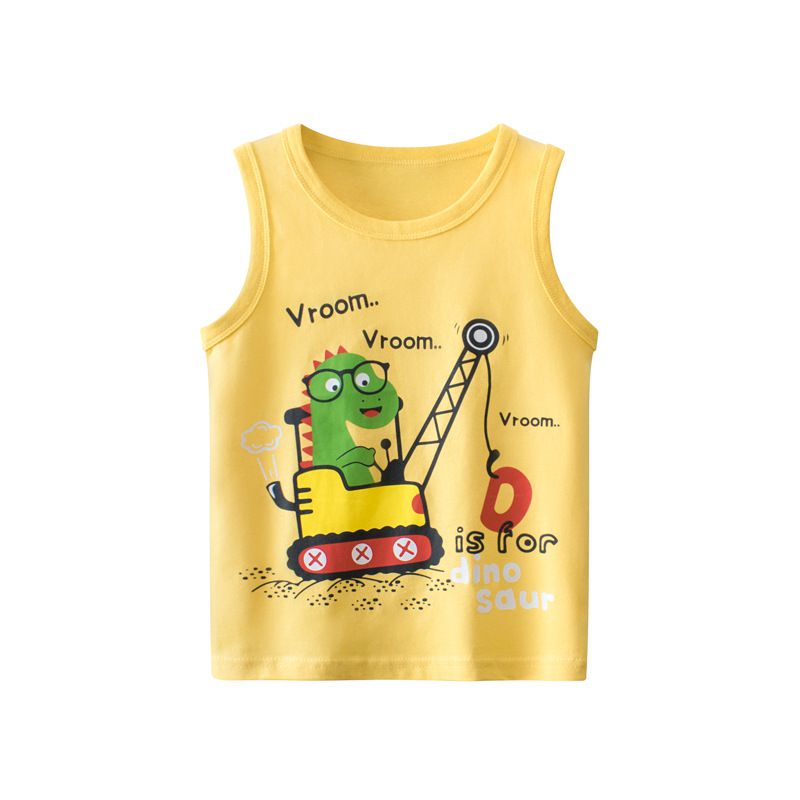 27KIDS - 純棉無袖背心上衣-童趣河馬-亮黃色