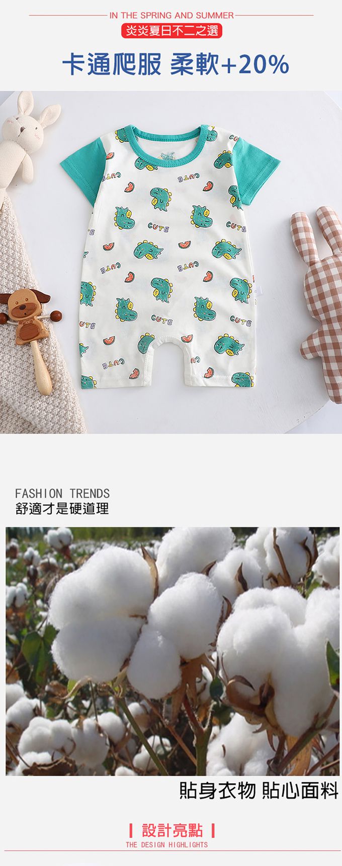 品名:短袖包屁衣 薄款透氣卡通連身衣
