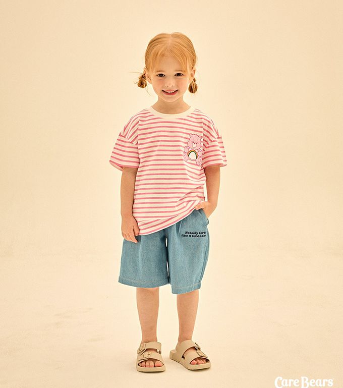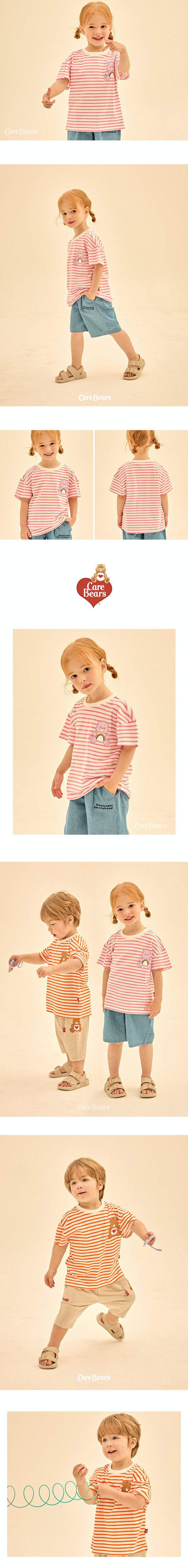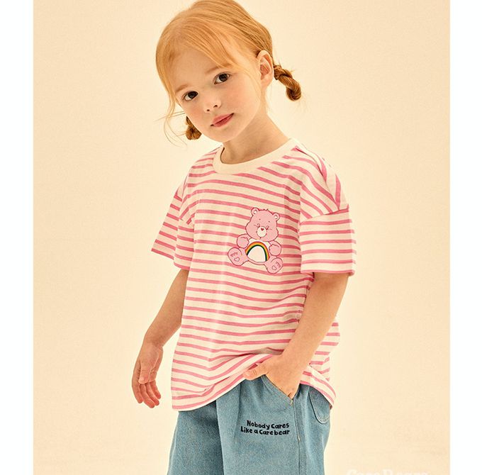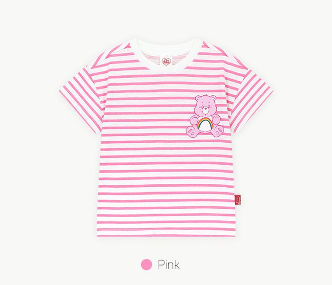 韓國 Care Bears - 聯名款條紋熊熊短袖上衣-粉紅