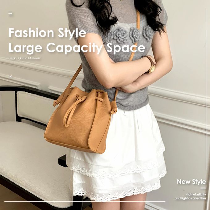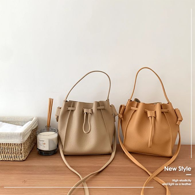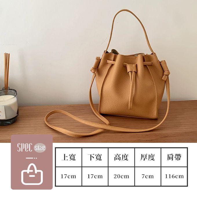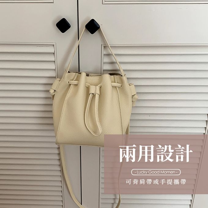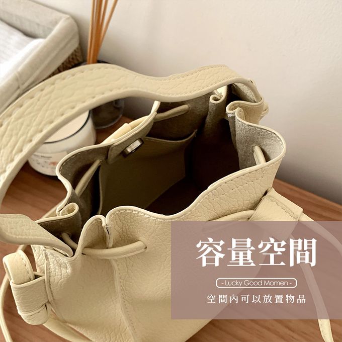 簡約新款 水桶包 側背包 女包 手提包 抽繩荔枝紋 包包 W6017