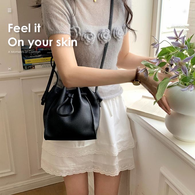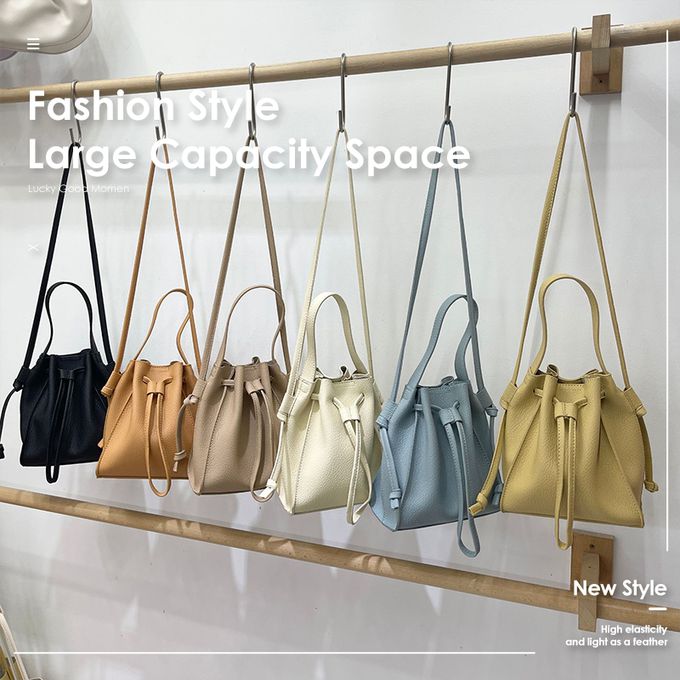 品名:簡約新款 水桶包 側背包 女包 手提包 抽繩荔枝紋 包包 W6017