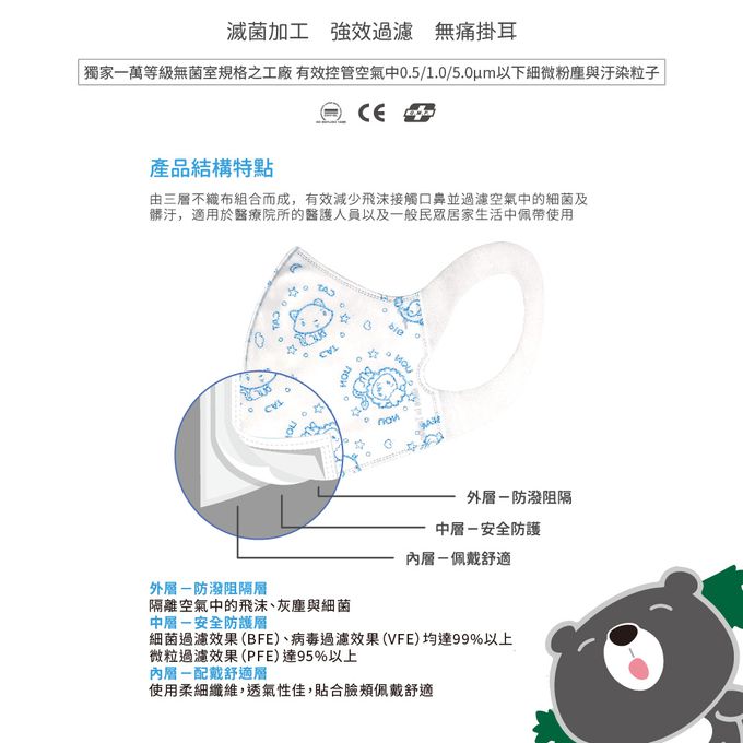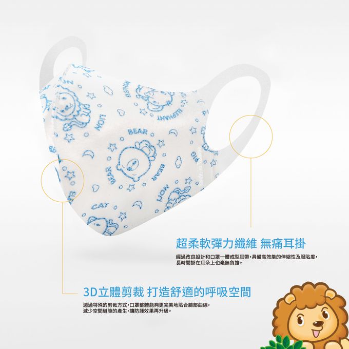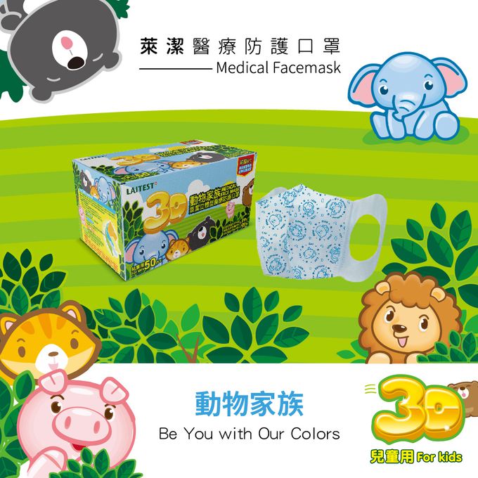 品名:3D立體動物家族兒童醫療防護口罩 50入盒裝(獨立單片包裝)