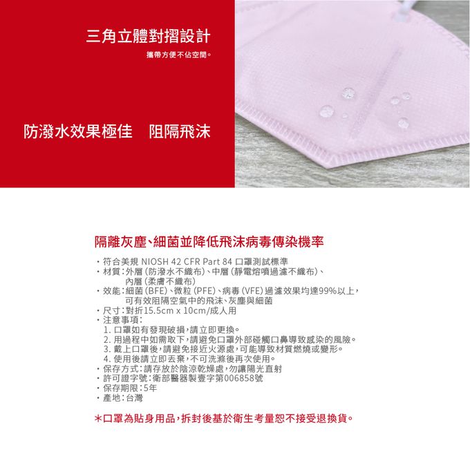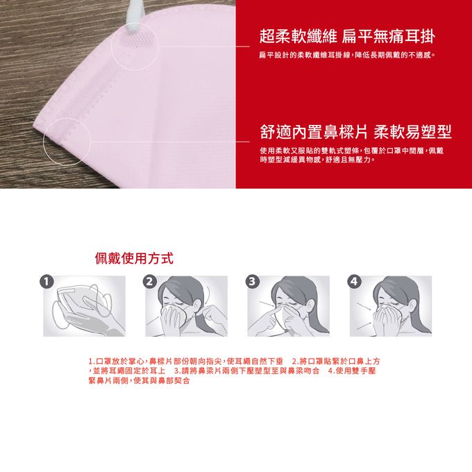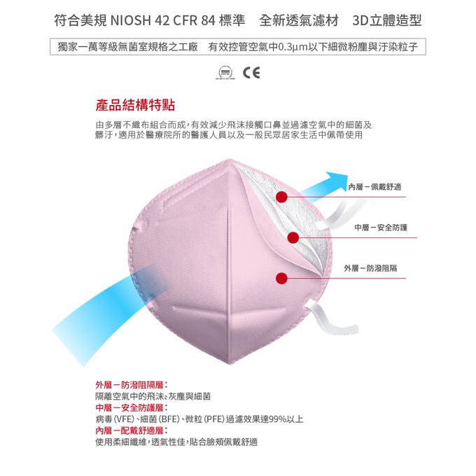 品名:醫療防護口罩/成人 N95 玫瑰粉 20入盒裝 (獨立單片包裝)