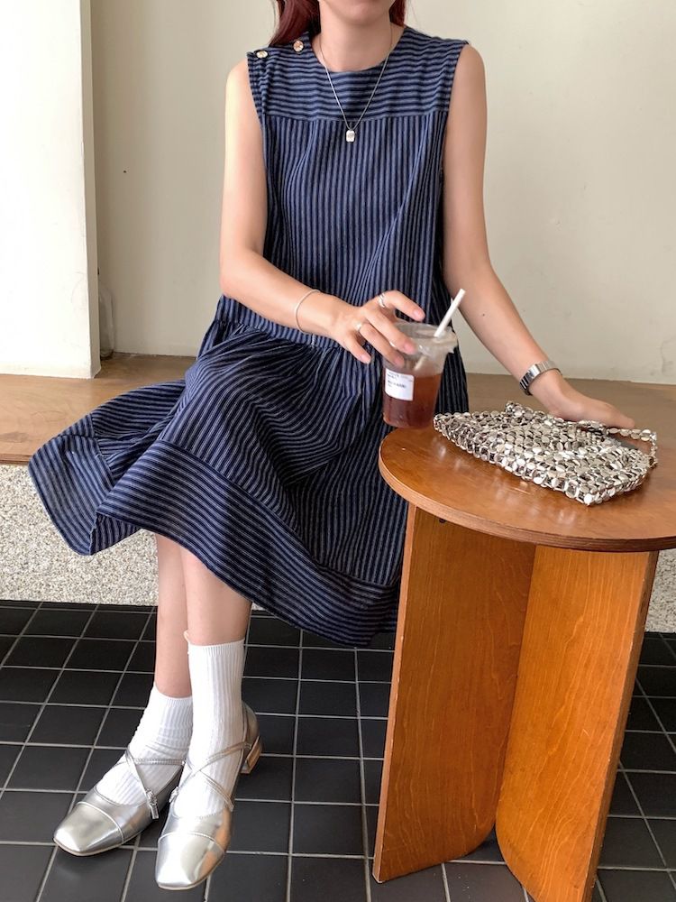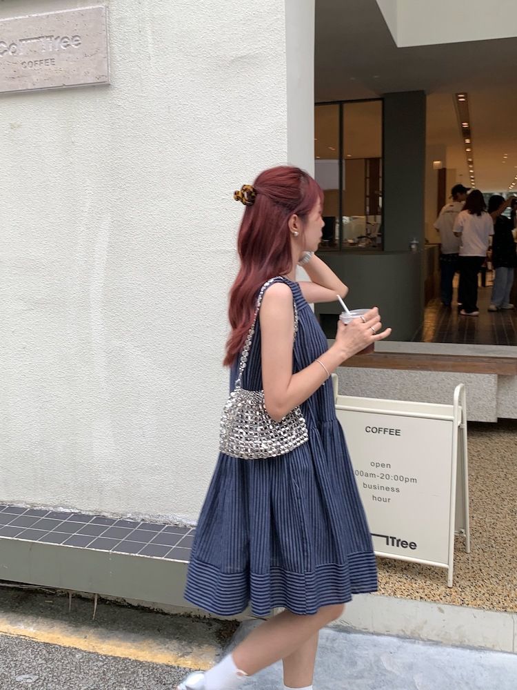 840787 修身顯瘦後開衩工裝牛仔長裙-懷舊藍