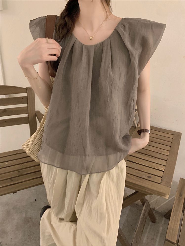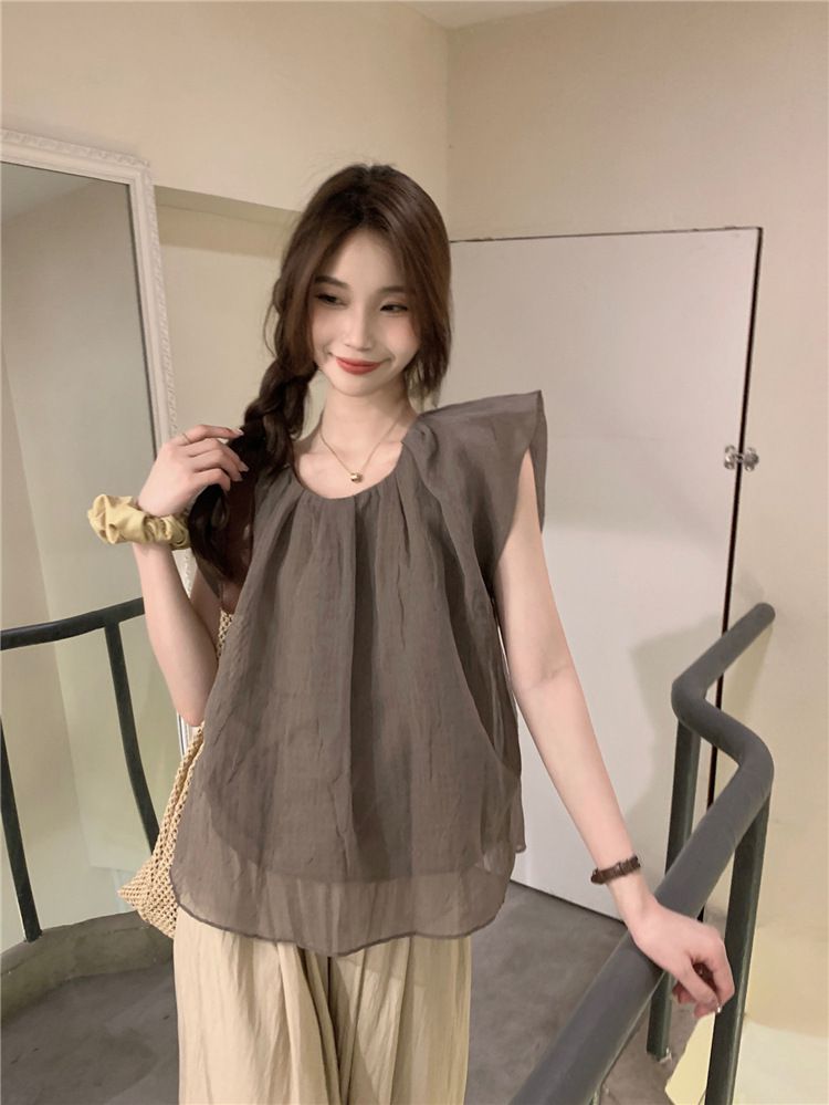 840791 光澤感V領荷葉邊長袖上衣-浪漫紫 (F)