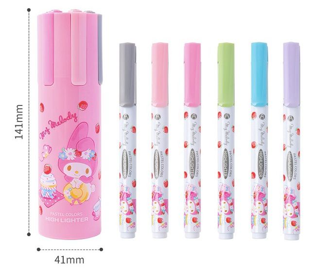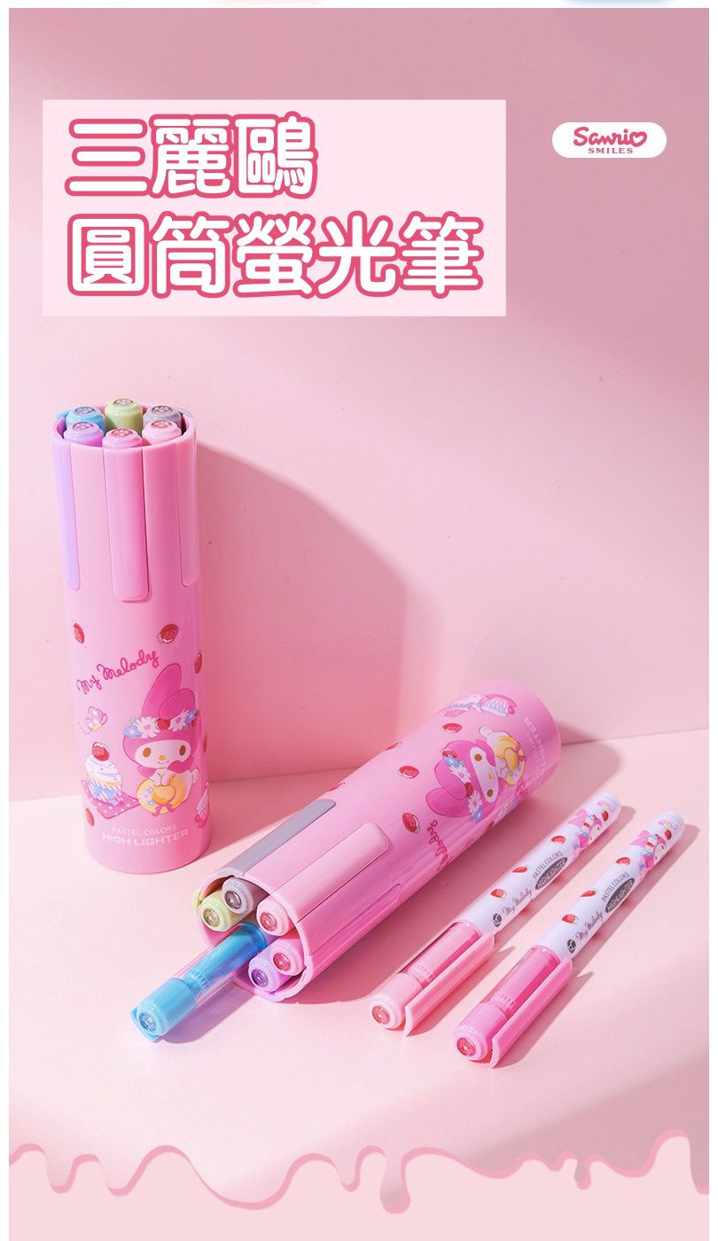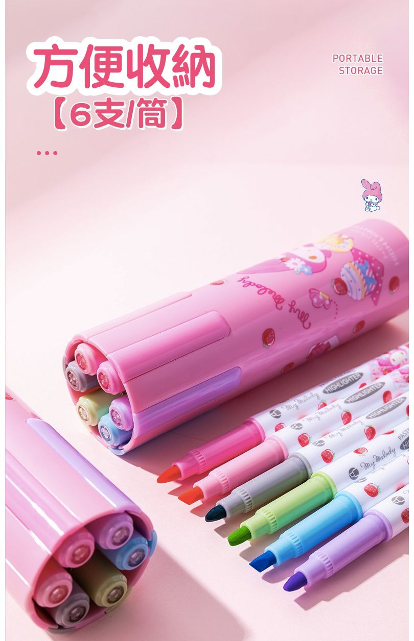 卡通圓筒螢光筆(6入)-卡通人物美樂蒂-粉色