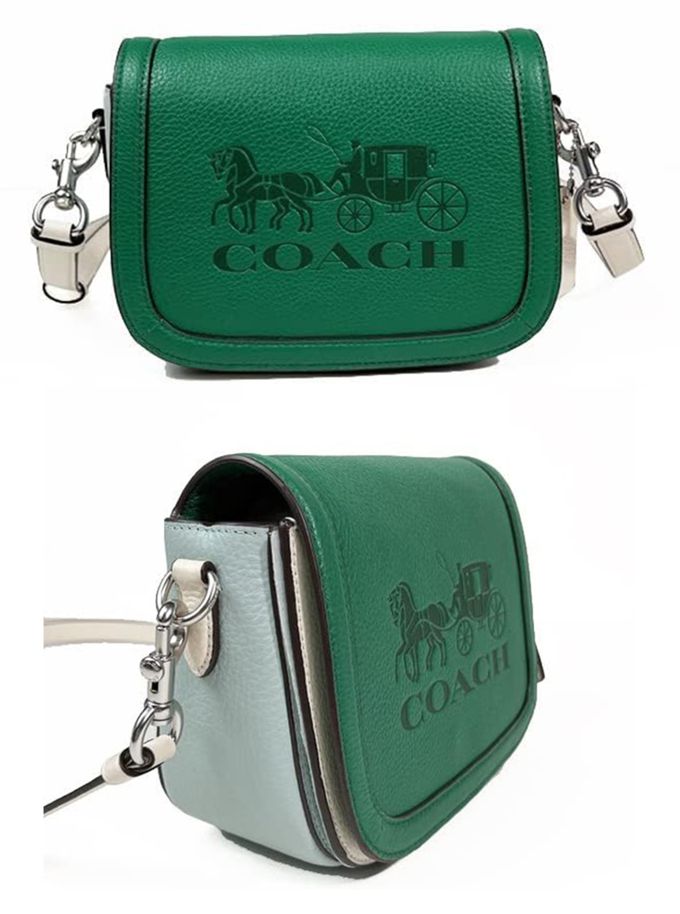 馬車LOGO皮革翻蓋迷你斜背包 (綠)