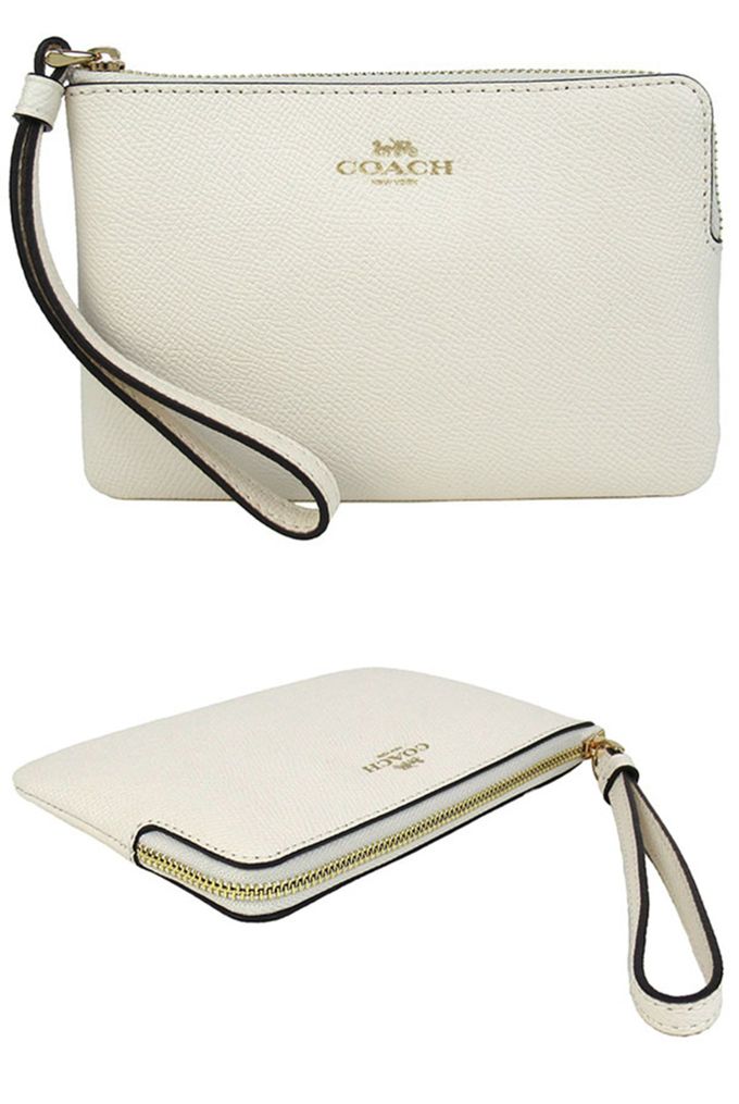 素面皮革L型拉鍊手拿包 (白)