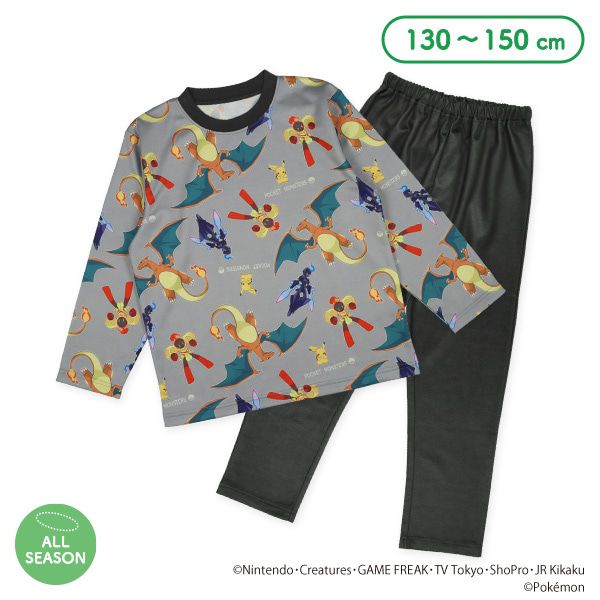 印花長袖家居服/睡衣-寶可夢與噴火龍-黑灰系