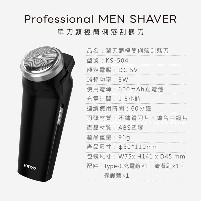 品名:KS-504 單刀頭極簡俐落刮鬍刀