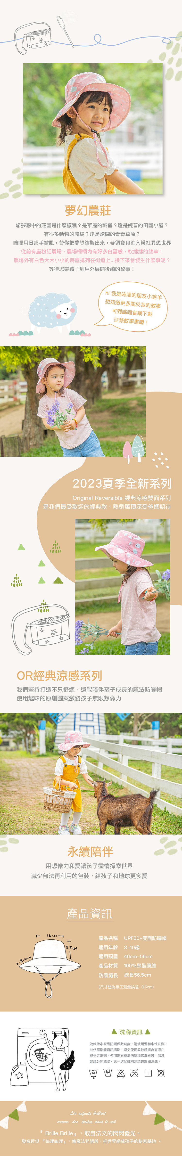 兒童雙面防曬帽UPF50+ 頭圍46-56cm-夢幻農莊 (3-10歲)