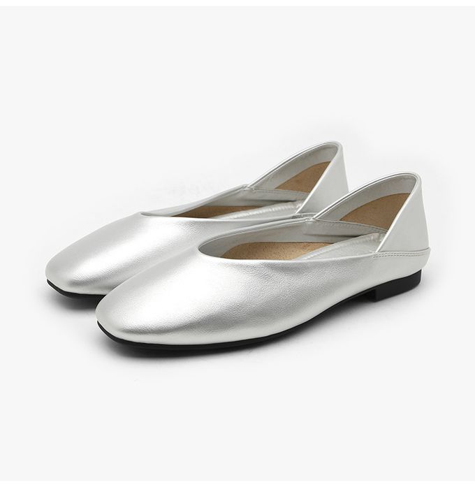 韓國 SAPPUN - 舒適軟皮革踩腳包鞋-銀