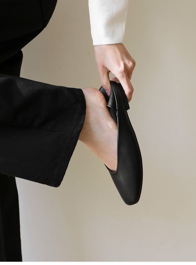 韓國 SAPPUN - 舒適軟皮革踩腳包鞋-黑