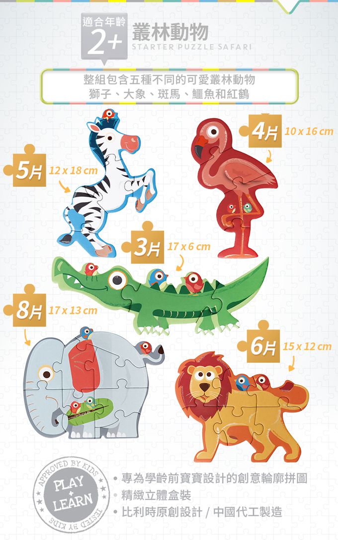 品名:寶寶拼圖 (叢林動物) (5入小拼圖)