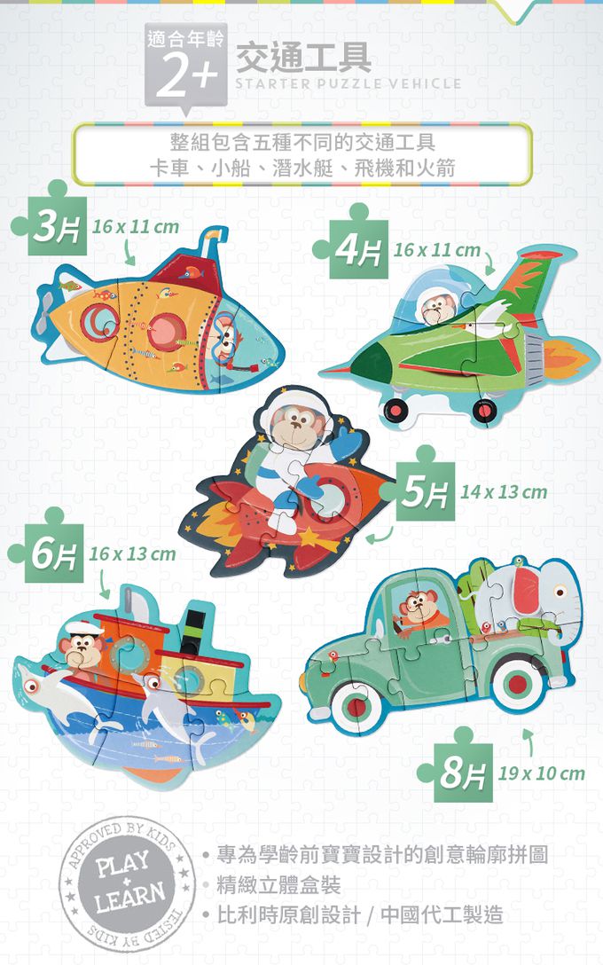 品名:寶寶拼圖 (交通工具) (5入小拼圖)