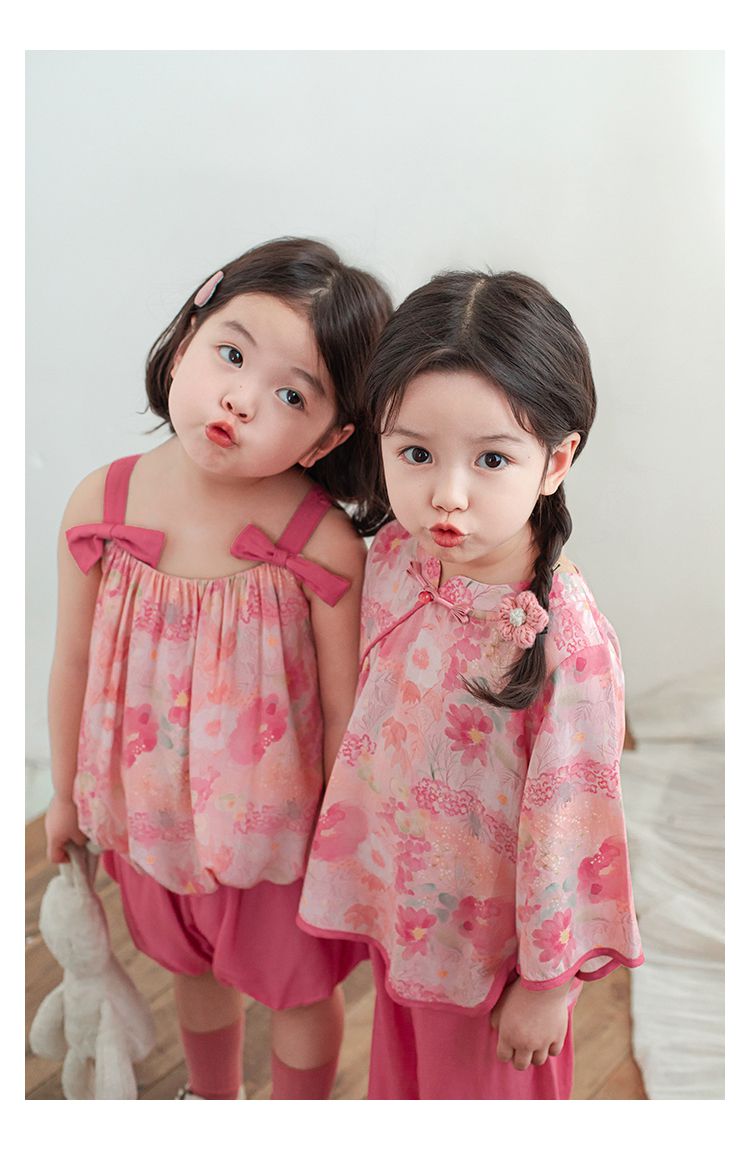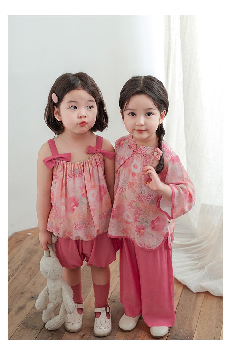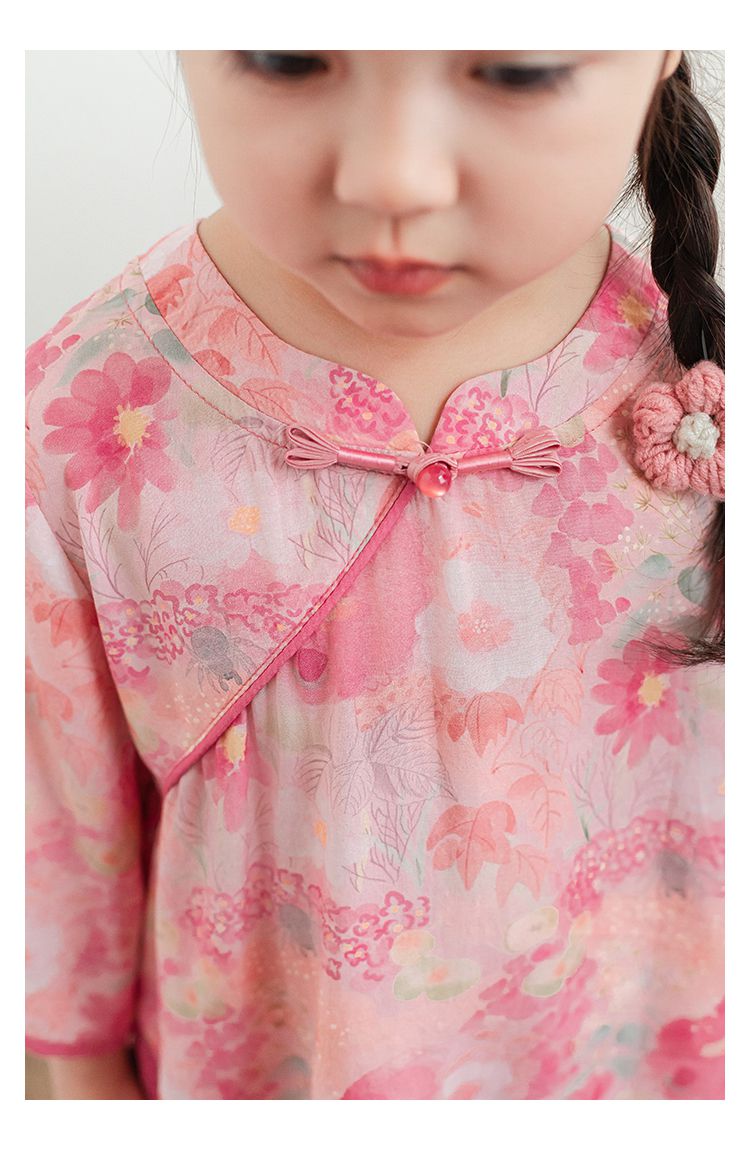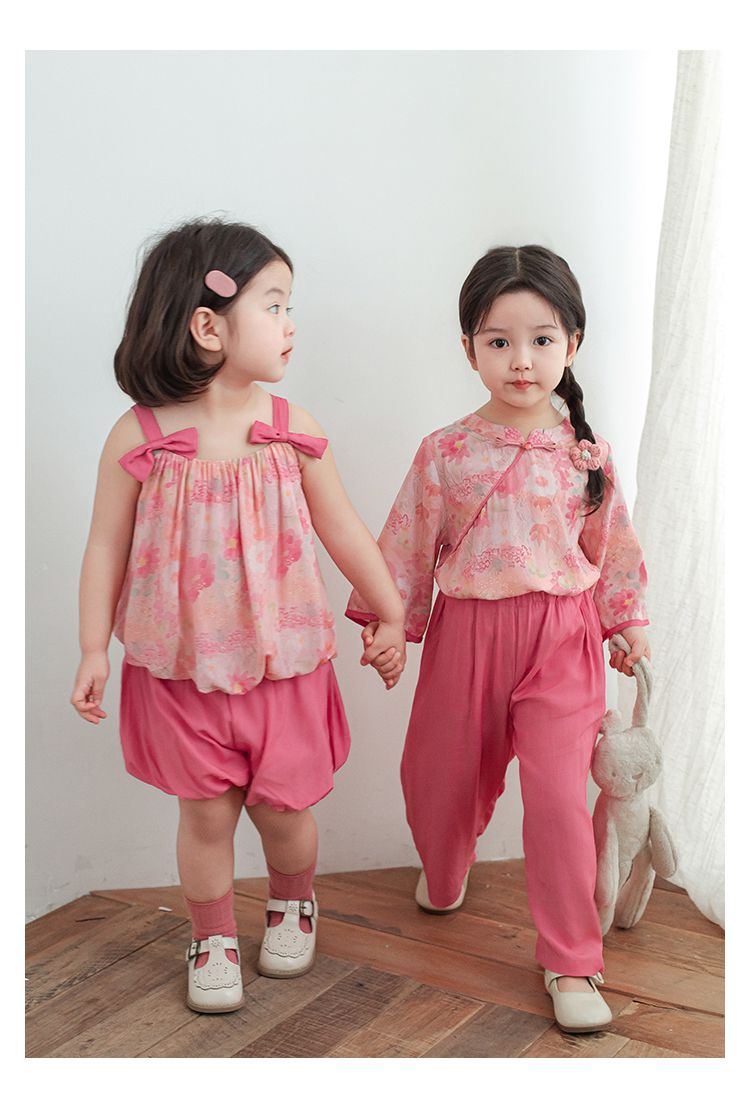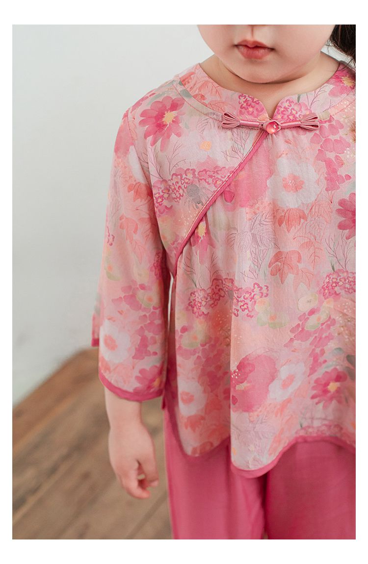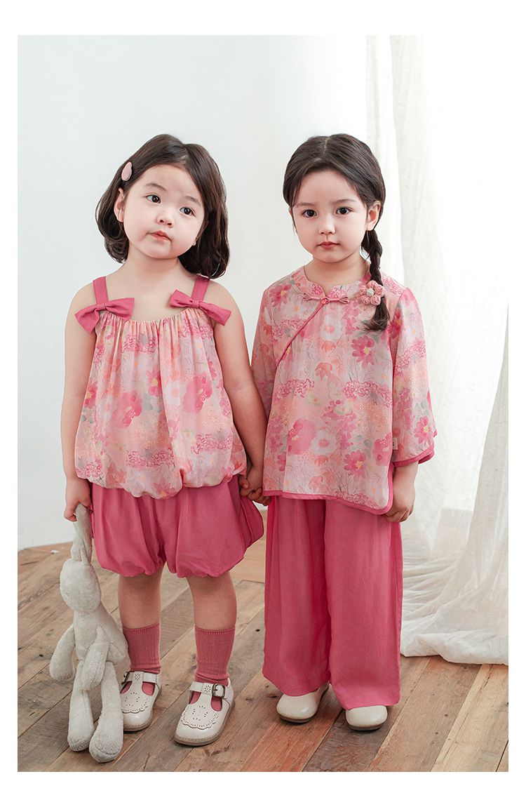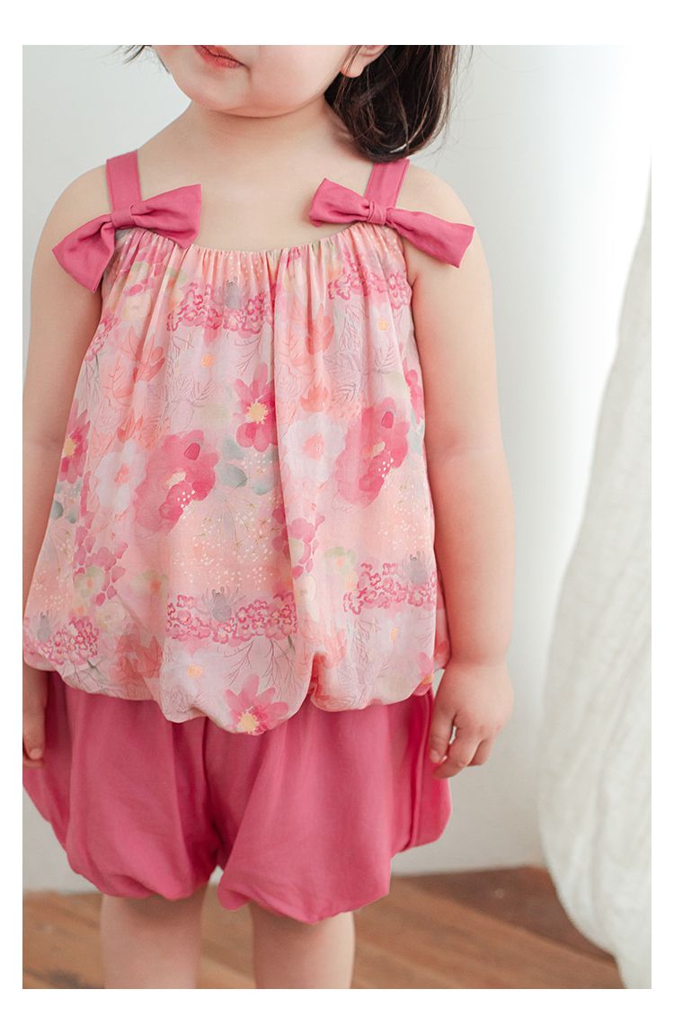 腰鬆緊舒適微寬鬆直筒褲-暈染杜鵑-粉色