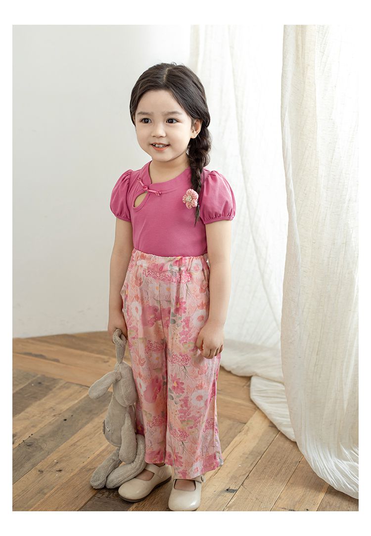 TONGMO - 腰鬆緊舒適微寬鬆直筒褲-暈染杜鵑-粉色