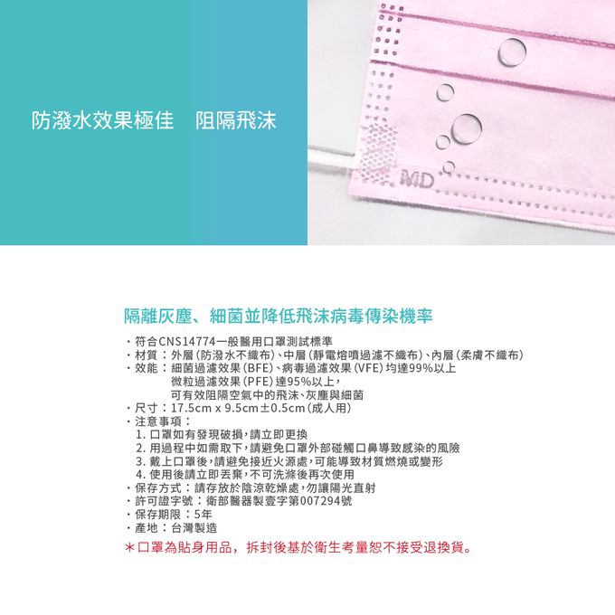 醫療器材許可證品名:萊潔醫療防護口罩(未滅菌)