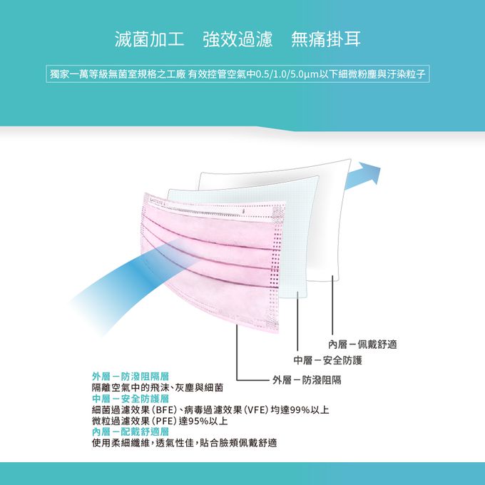 醫療防護口罩/成人 (量販組合)-平面口罩-海洋藍+玫瑰粉