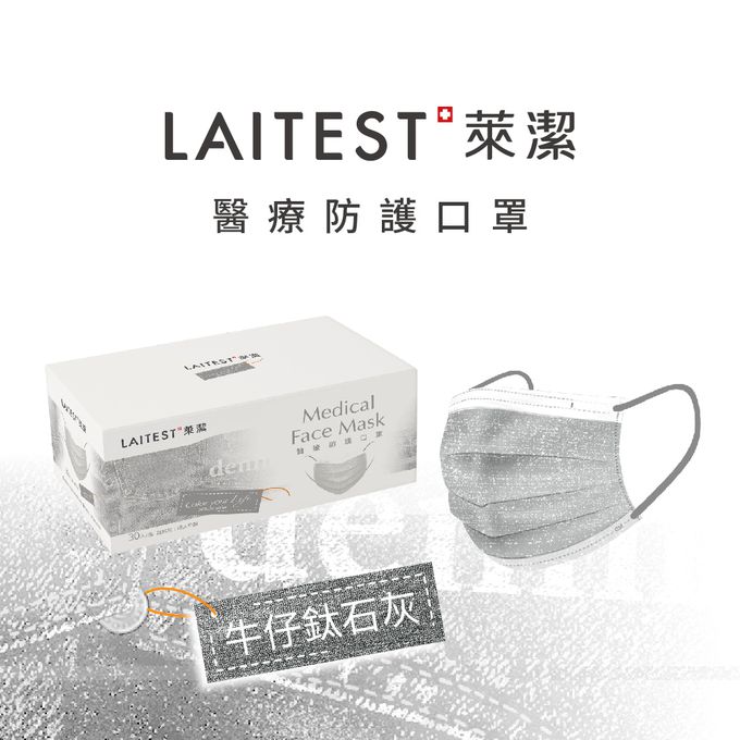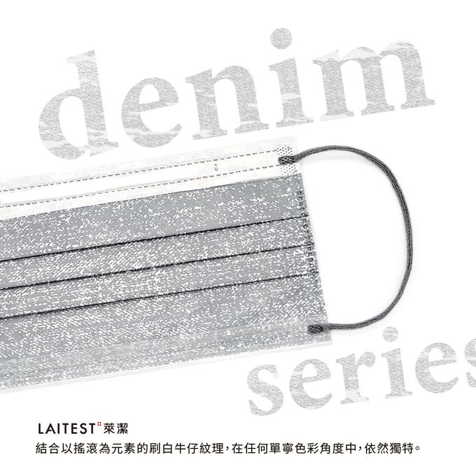 品名:醫療防護口罩/成人 牛仔鈦石灰 30入盒裝(牛仔系列)