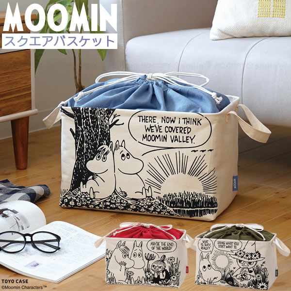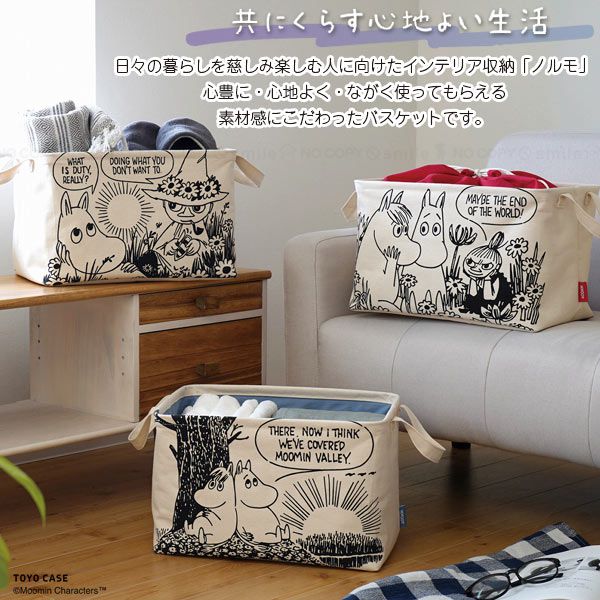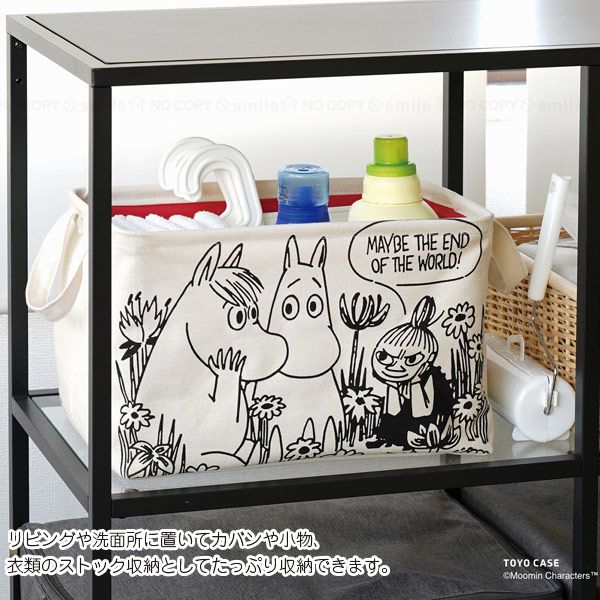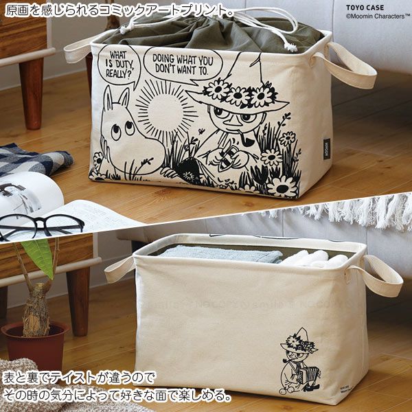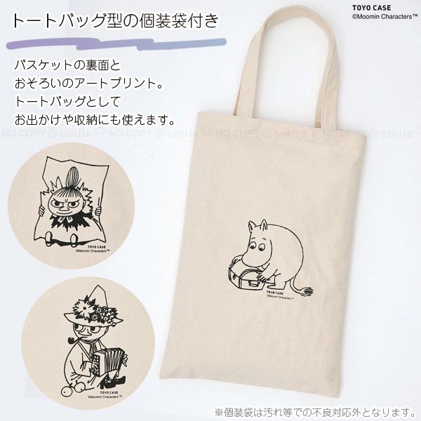 正反印花摺疊帆布收納籃(附托特袋包裝)-姆明-藍