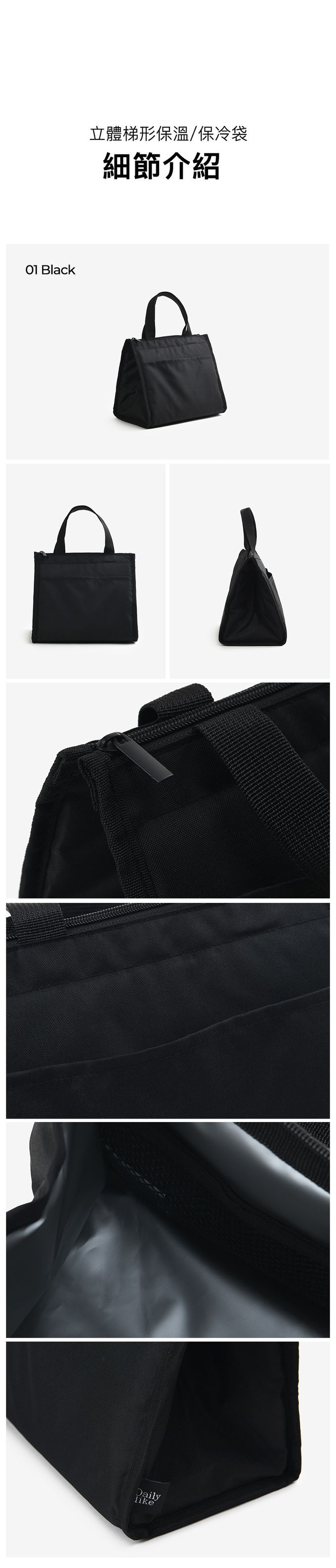 韓國 Daily Like - 立體梯形保溫/保冷便當包-黑 (25 x 23 x 15cm, 容量約8L)