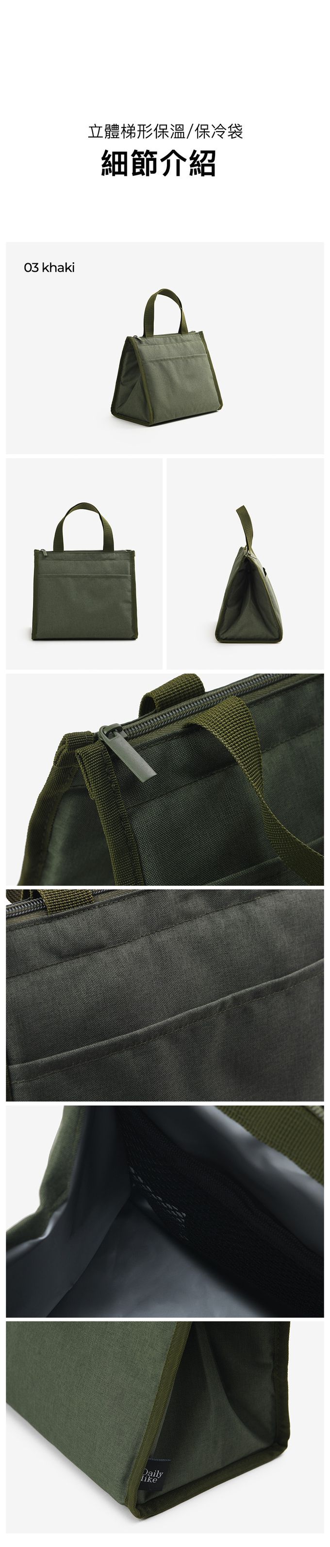 韓國 Daily Like - 立體梯形保溫/保冷便當包-軍綠 (25 x 23 x 15cm, 容量約8L)
