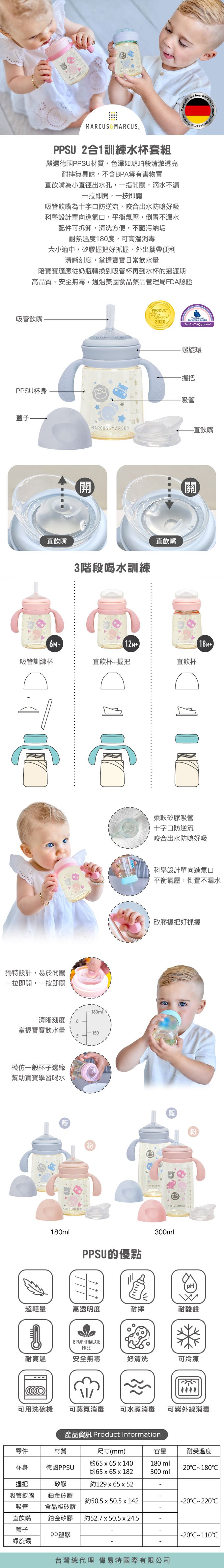 • 品名:PPSU 2合1訓練水杯套組300ml-藍