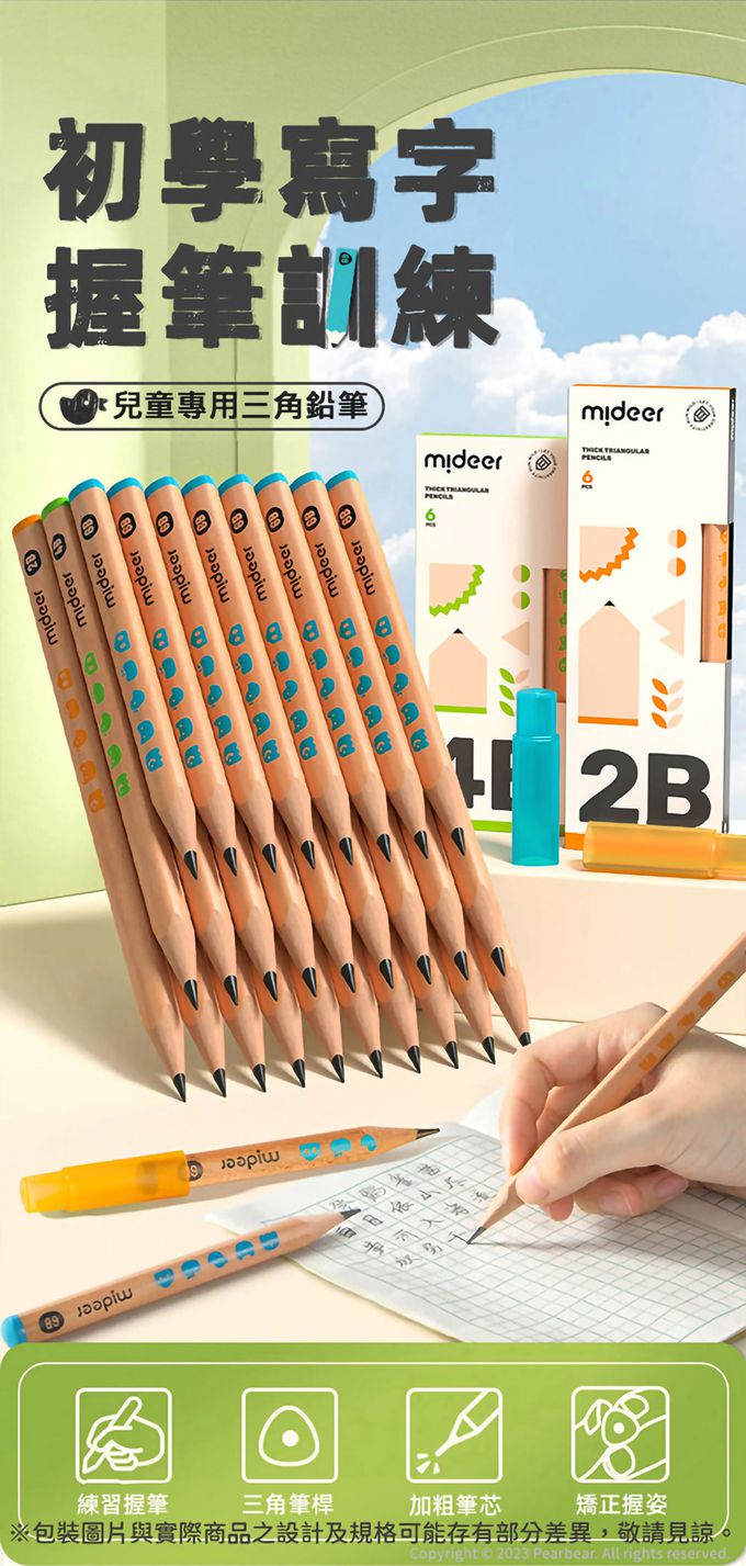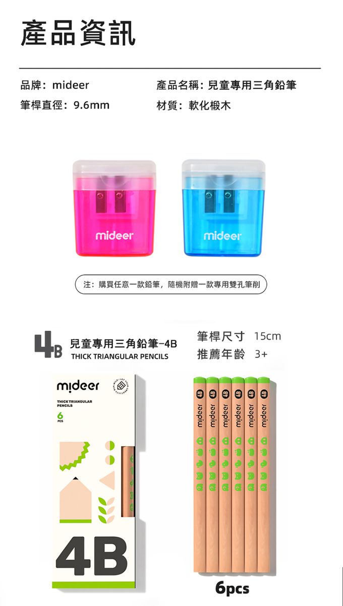 兒童專用三角鉛筆-4B (贈專用雙孔筆削1個(顏色隨機))