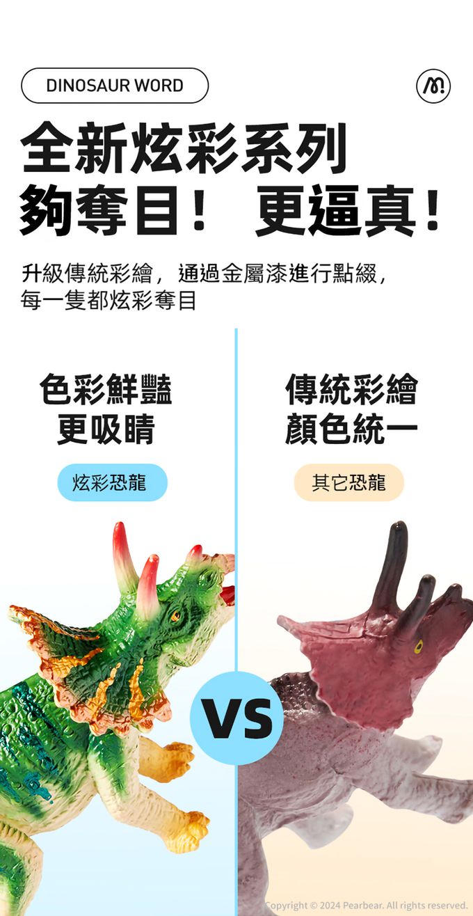 每一隻恐龍都經過彩繪、通過金屬漆進行點綴
