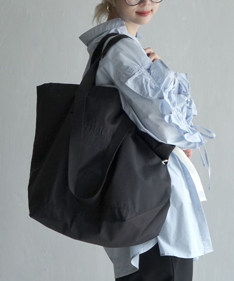 日本 zootie - anello 可機洗大容量輕盈托特包-2way背帶-黑 (55x42cm)