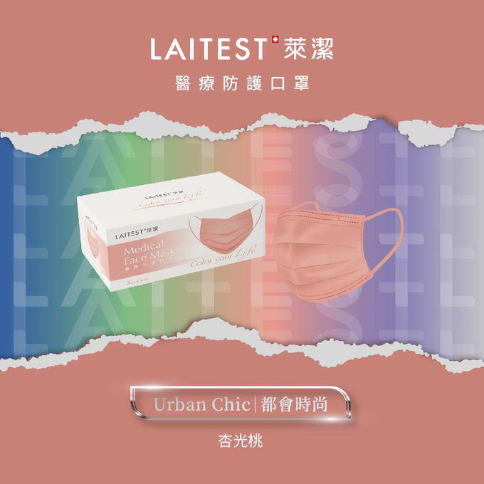 品名:醫療防護口罩/成人 杏光桃 30入盒裝(都會時尚系列)