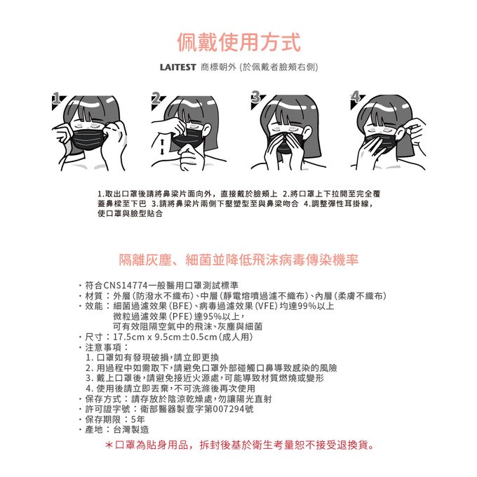 醫療器材許可證品名:萊潔醫療防護口罩(未滅菌)