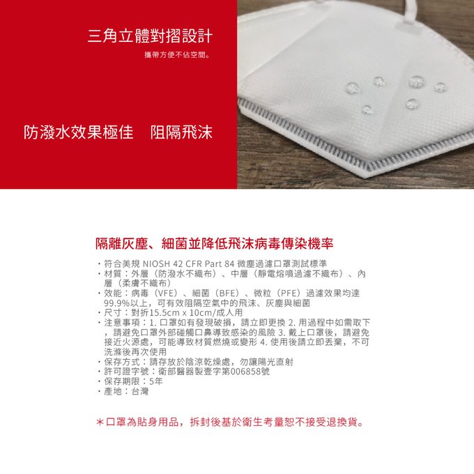 品名:N95 醫療防護口罩 雪花白 20入盒裝(獨立單片包裝)
