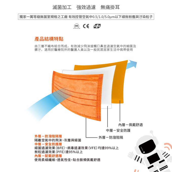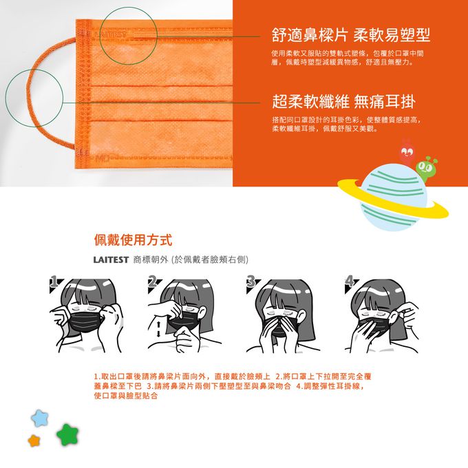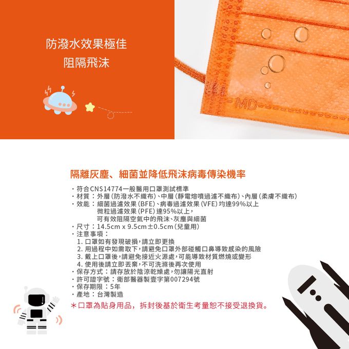 品名:醫療防護口罩/兒童 童心淡澄橘 50入盒裝(炫彩系列)