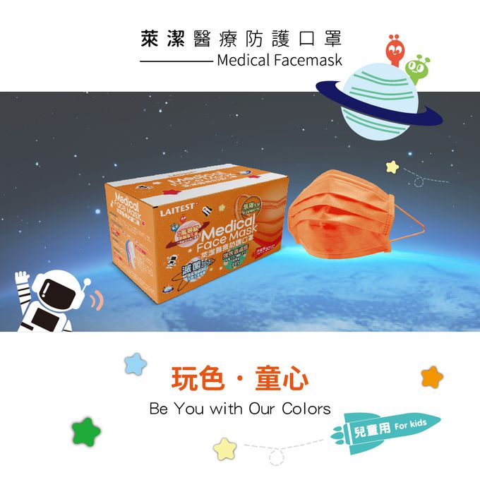 醫療防護口罩/兒童 童心淡澄橘 50入盒裝(炫彩系列)-平面口罩