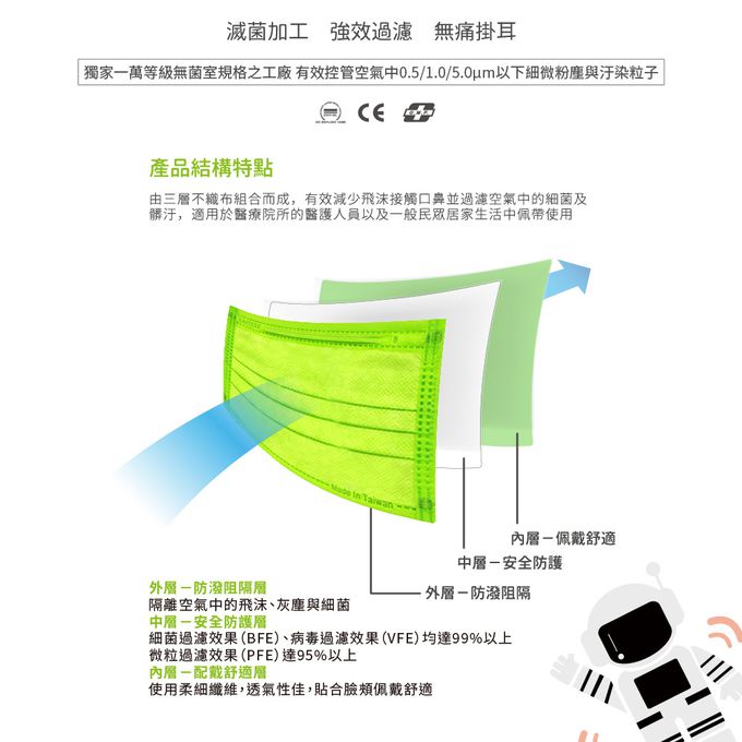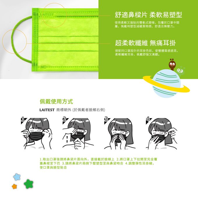 品名:醫療防護口罩/兒童 童心極光綠 50入盒裝(炫彩系列)