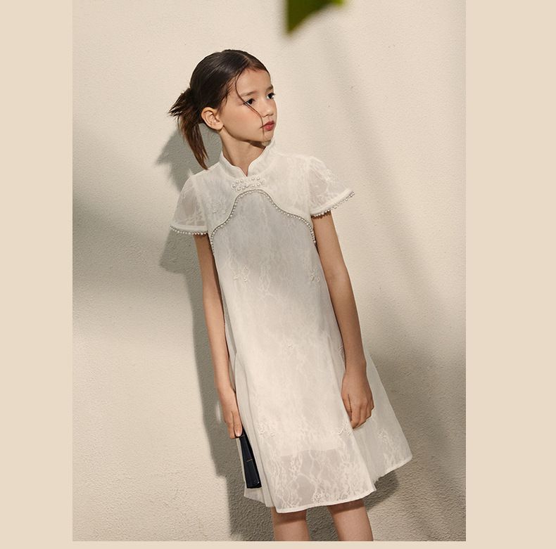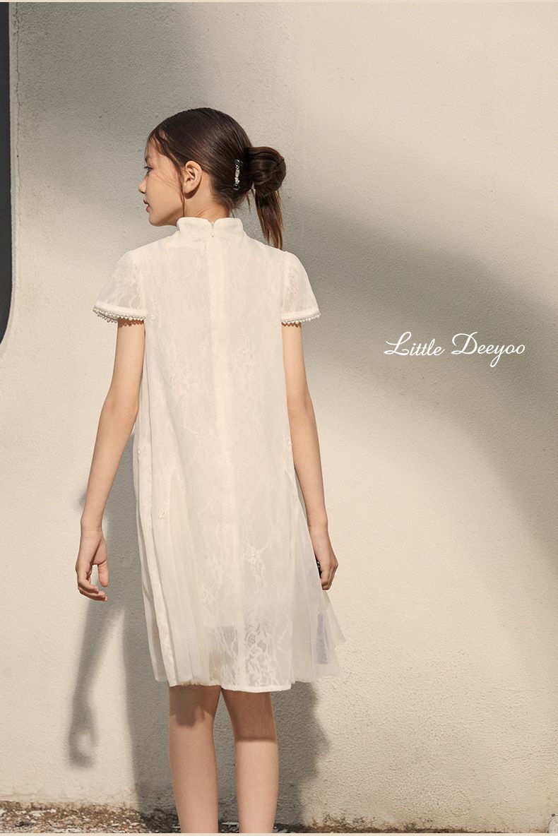 品名:典雅氣質網紗拼接貝殼袖洋裝