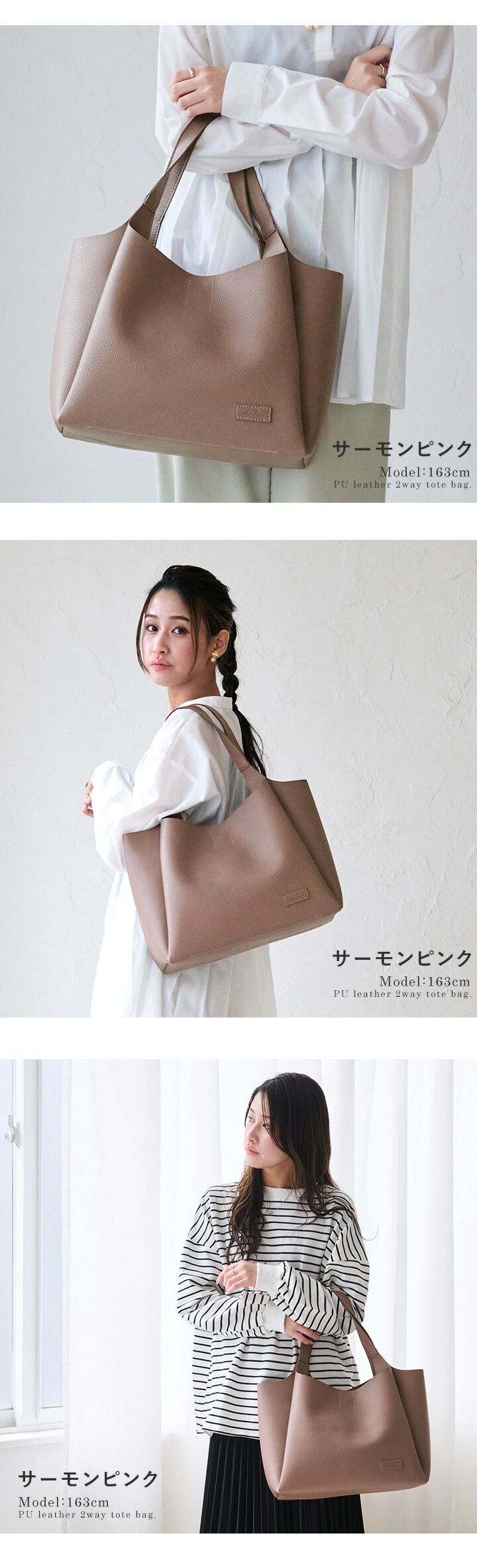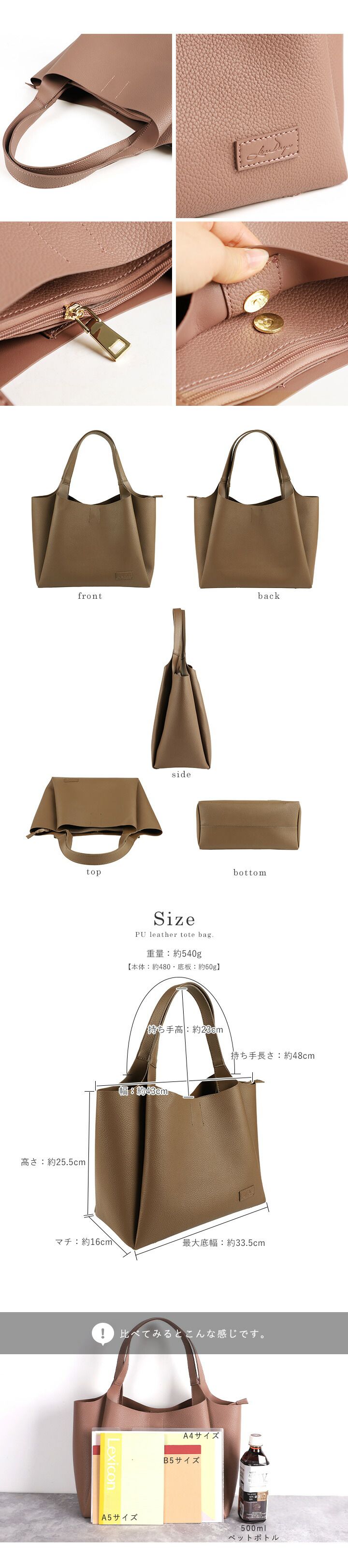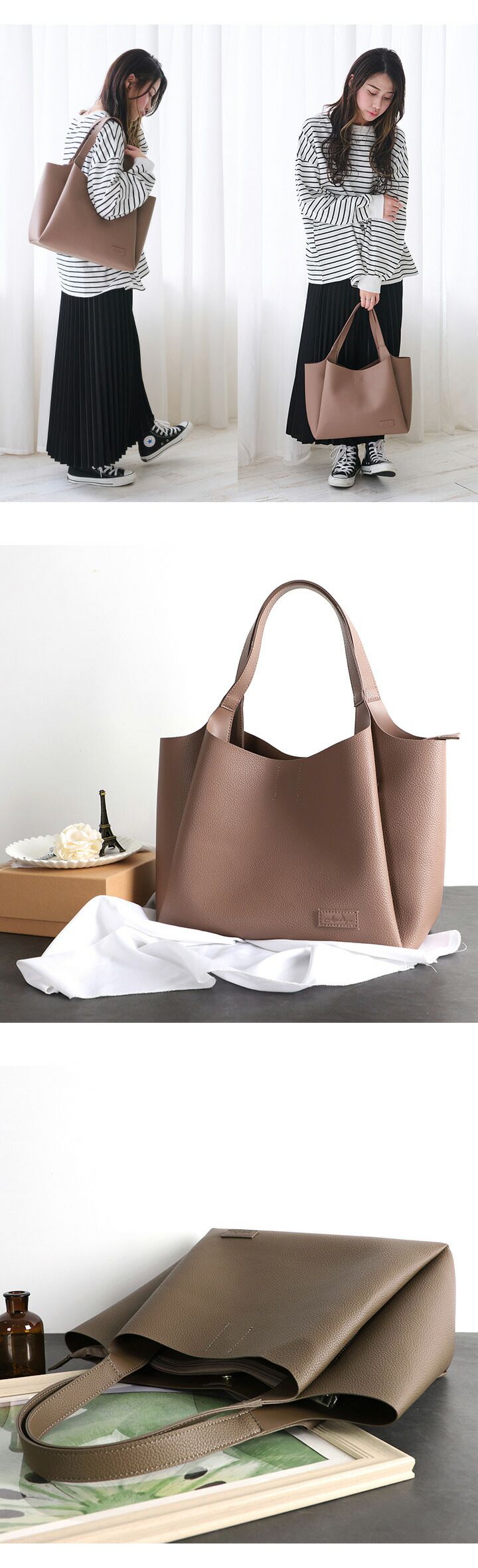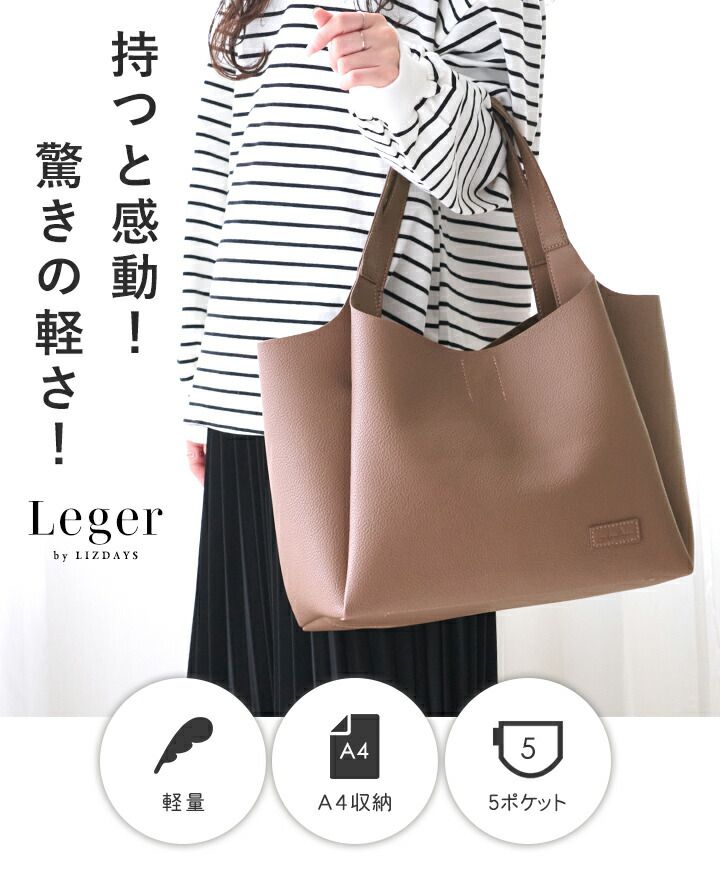 日本 LIZDAYS - 柔軟皮質輕巧大容量肩背包-卡其 (33x43x25cm)
