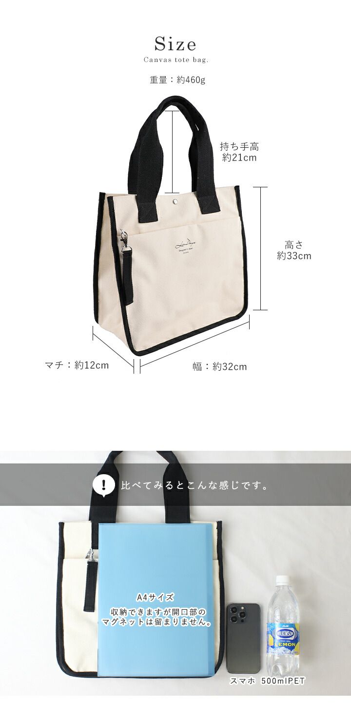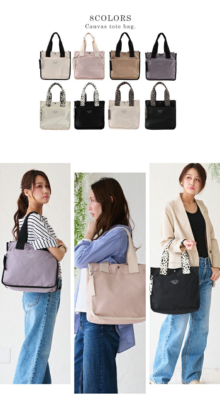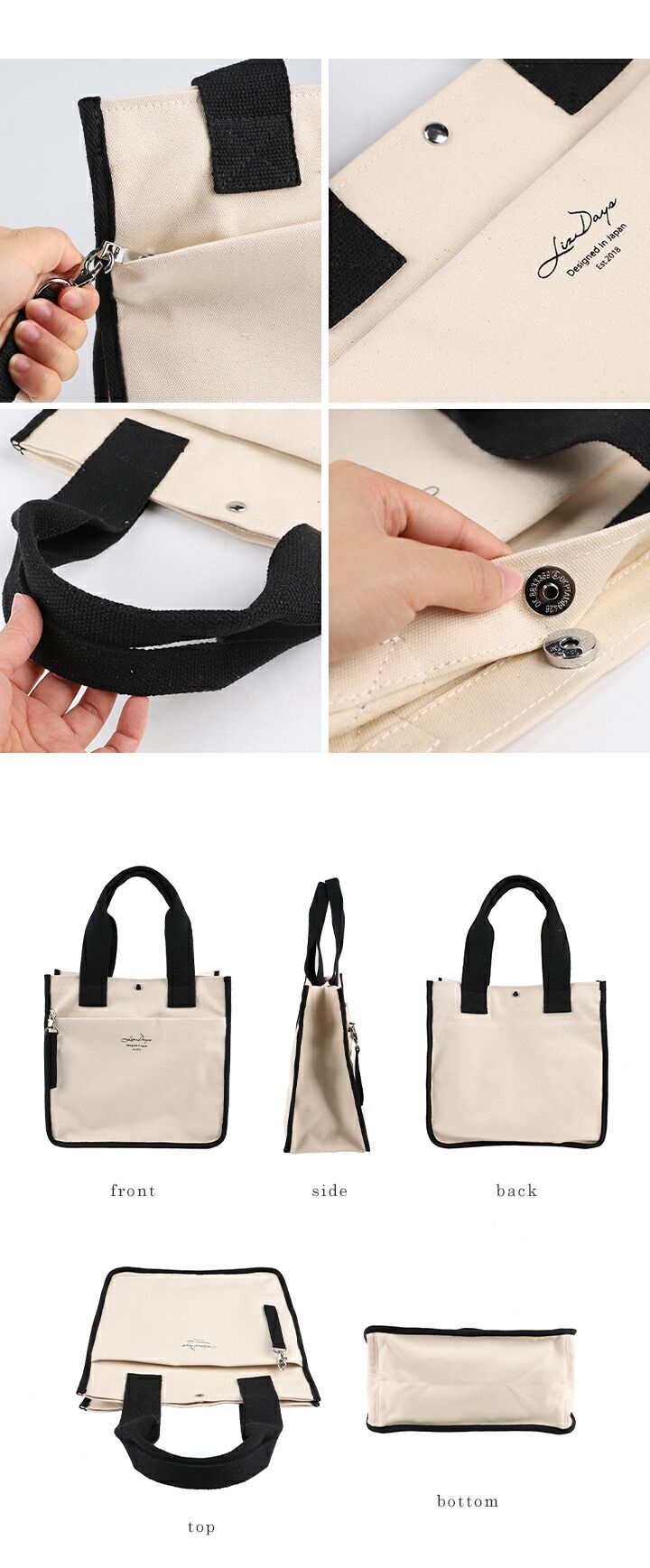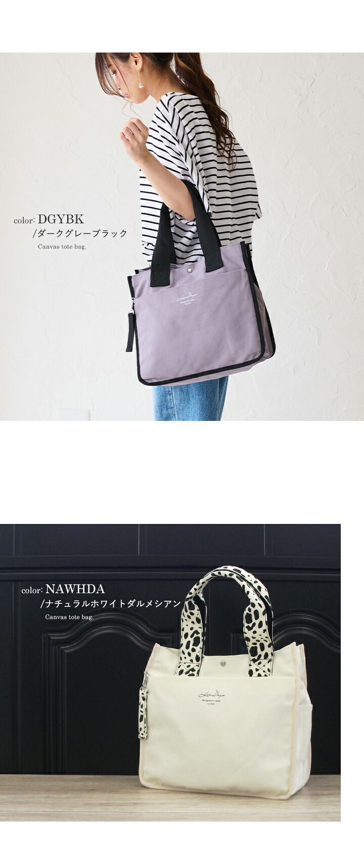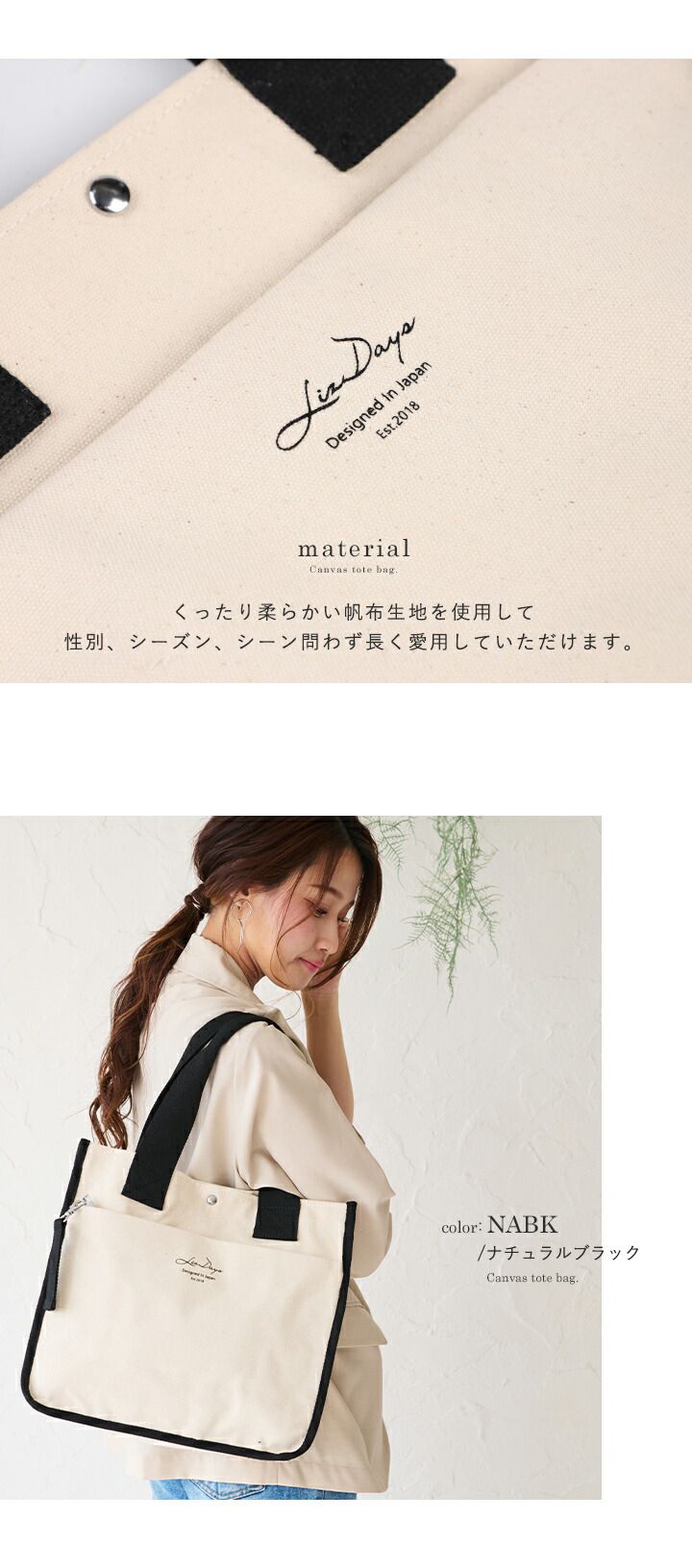 日本 LIZDAYS - 通勤推薦 清爽帆布實用托特包-黑x斑點 (32x33cm)