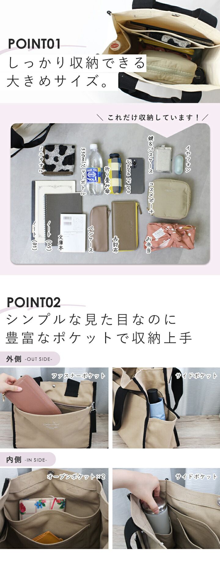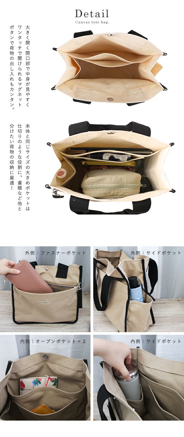 日本 LIZDAYS - 多格層帆布2way肩背/手提包-淺灰 (29x24x14cm)