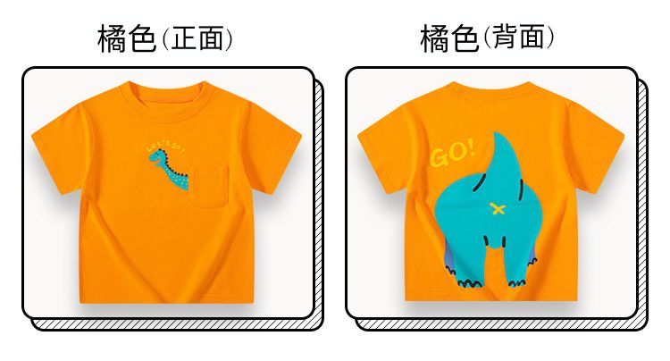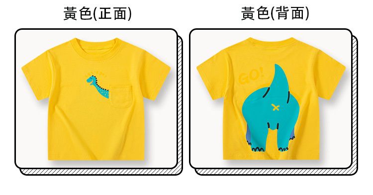 純棉短袖上衣-前後恐龍印花-黃色