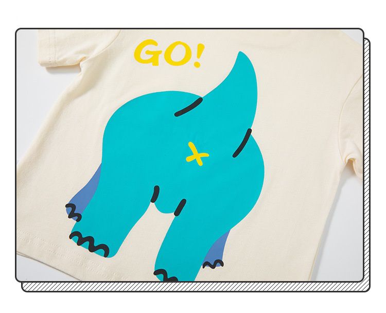 BE TOP - 純棉短袖上衣-帥氣恐龍-米黃