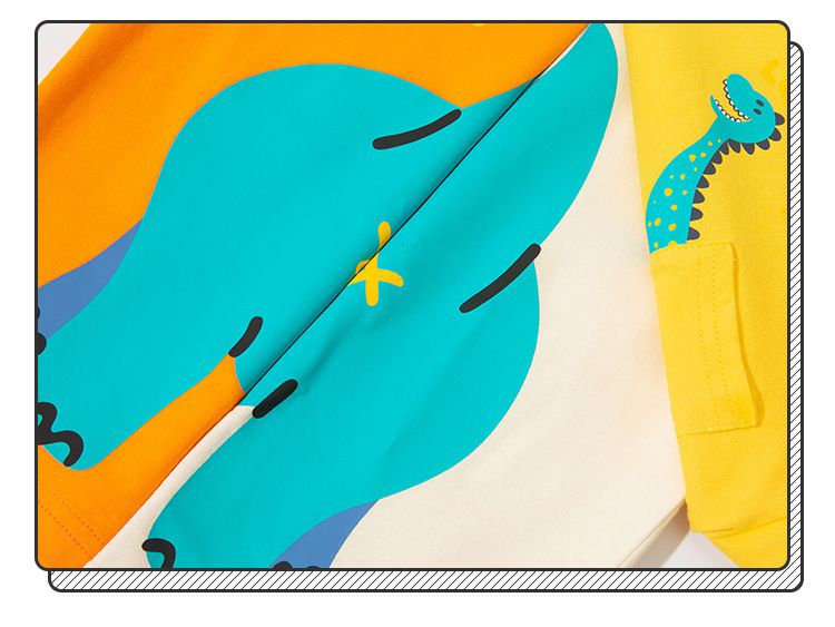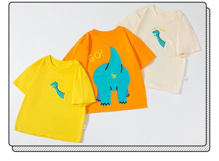 BE TOP - 純棉短袖上衣-可愛恐龍-黃藍拼袖