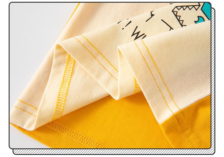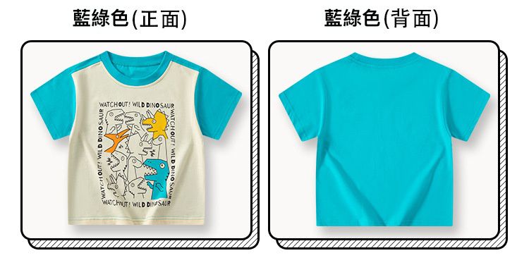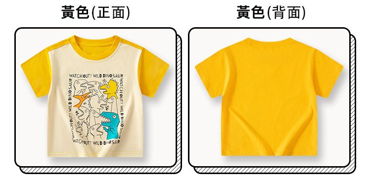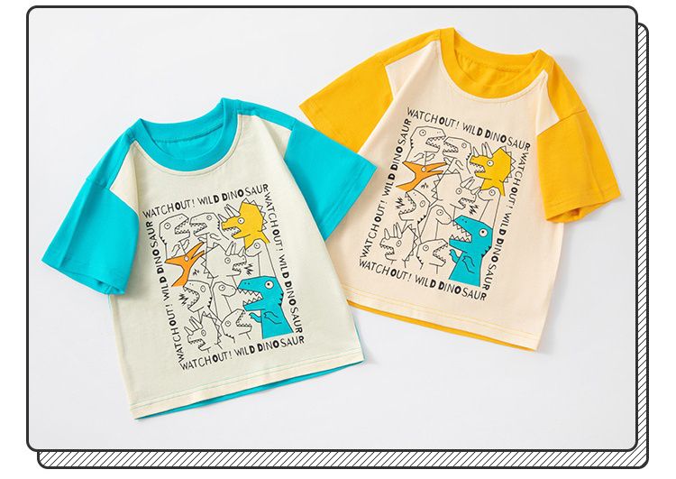 BE TOP - 純棉短袖上衣-可愛恐龍-黃藍拼袖