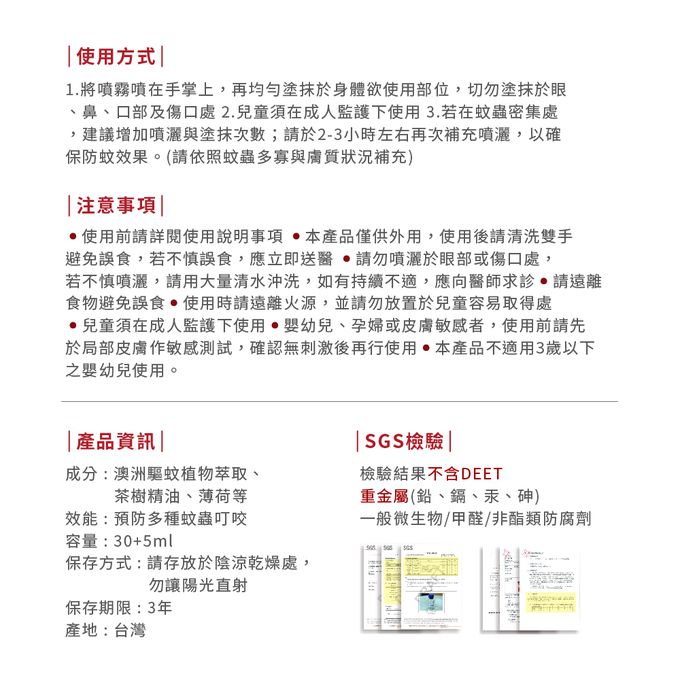 SGS-不含DEET、四大重金屬及防腐劑