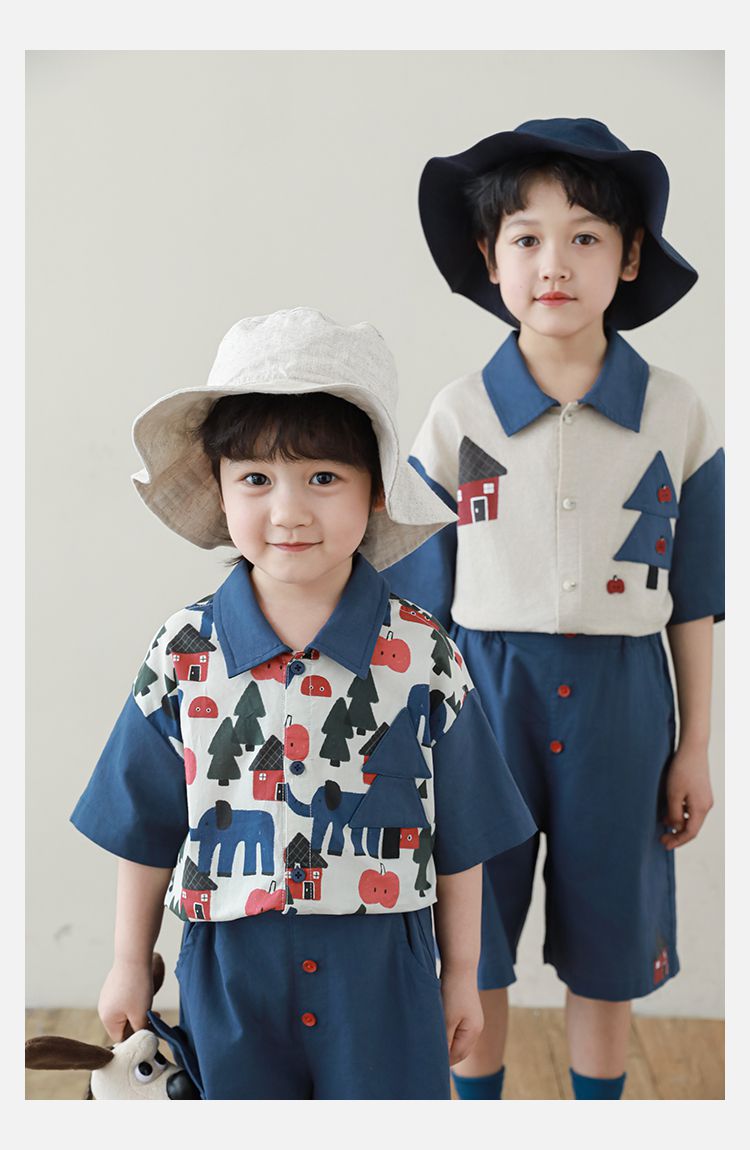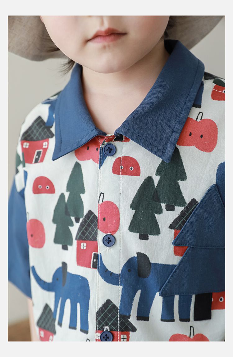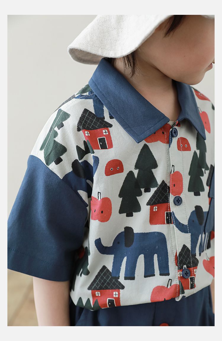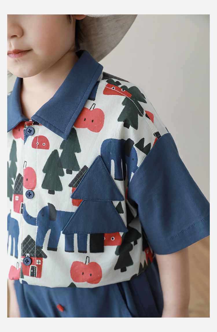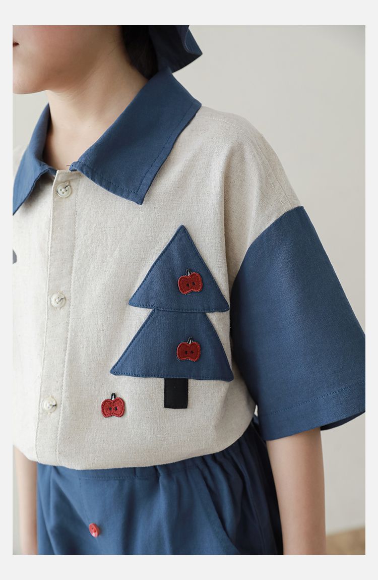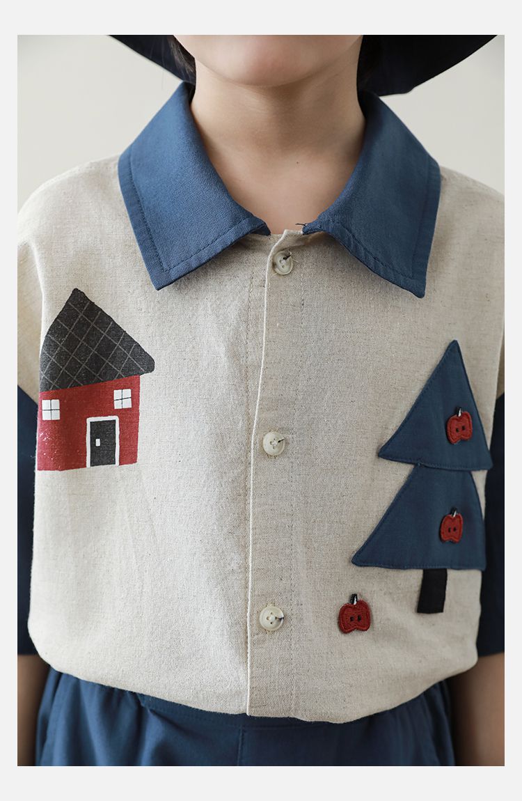 撞色紅鈕釦X森林小屋印花,童趣可愛