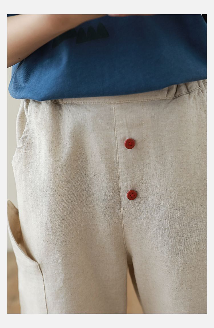 棉麻感休閒短褲,日系小清新
