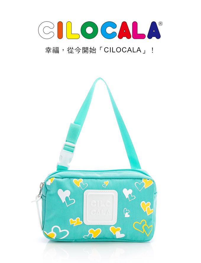 CILOCALA - 限量版亮彩尼龍防潑水HEARTS斜背小方包-淺綠