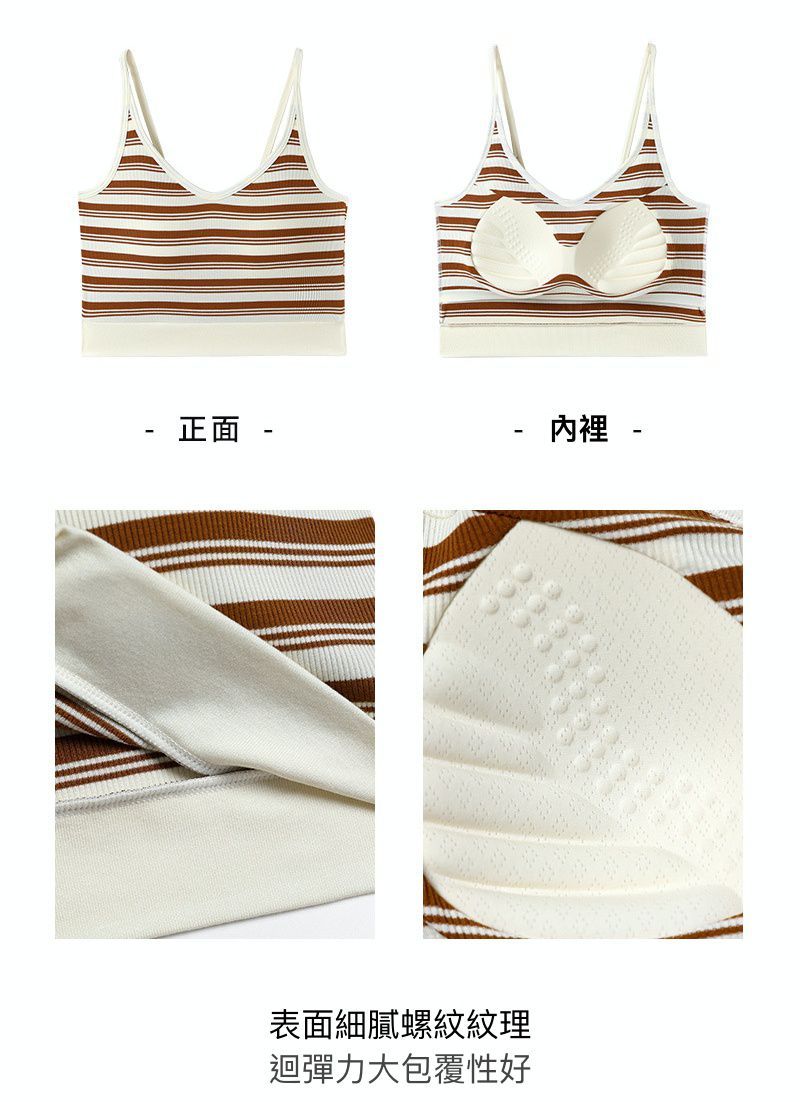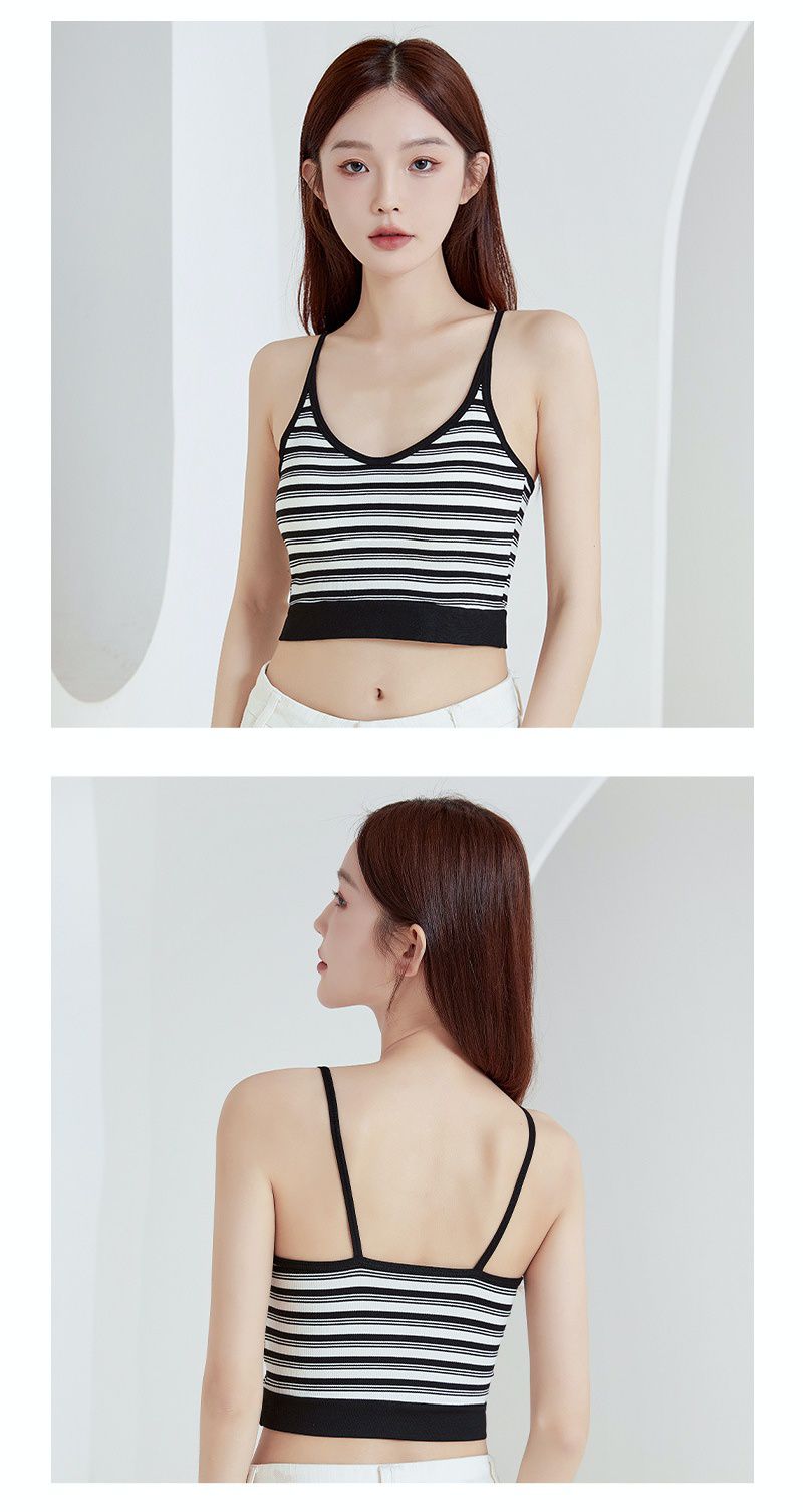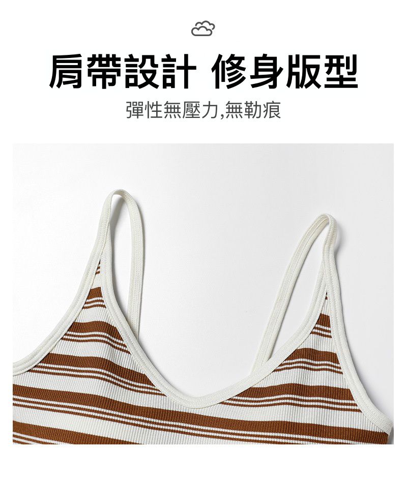 • 品名:V領條紋中短版BRA TOP/附罩杯上衣